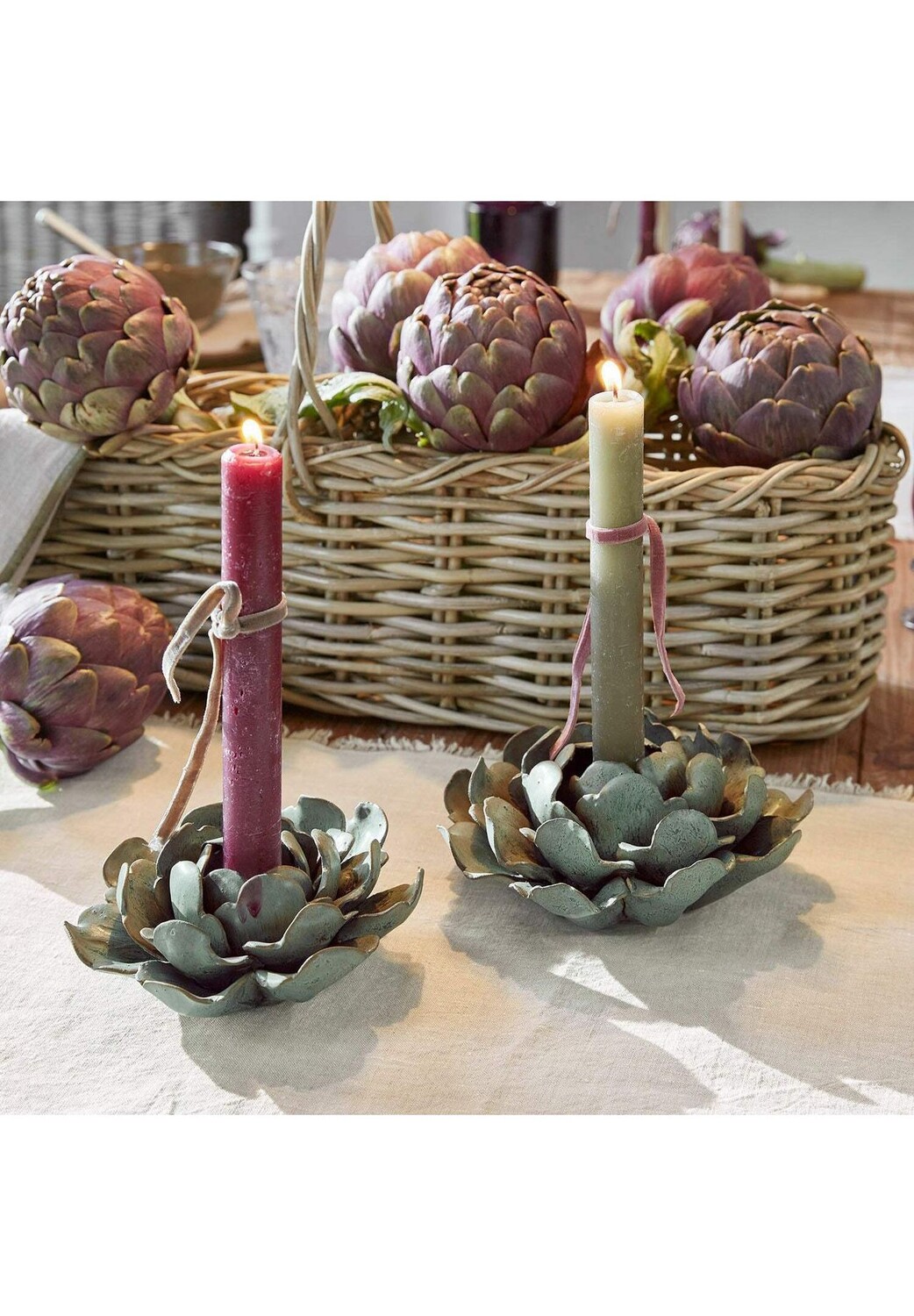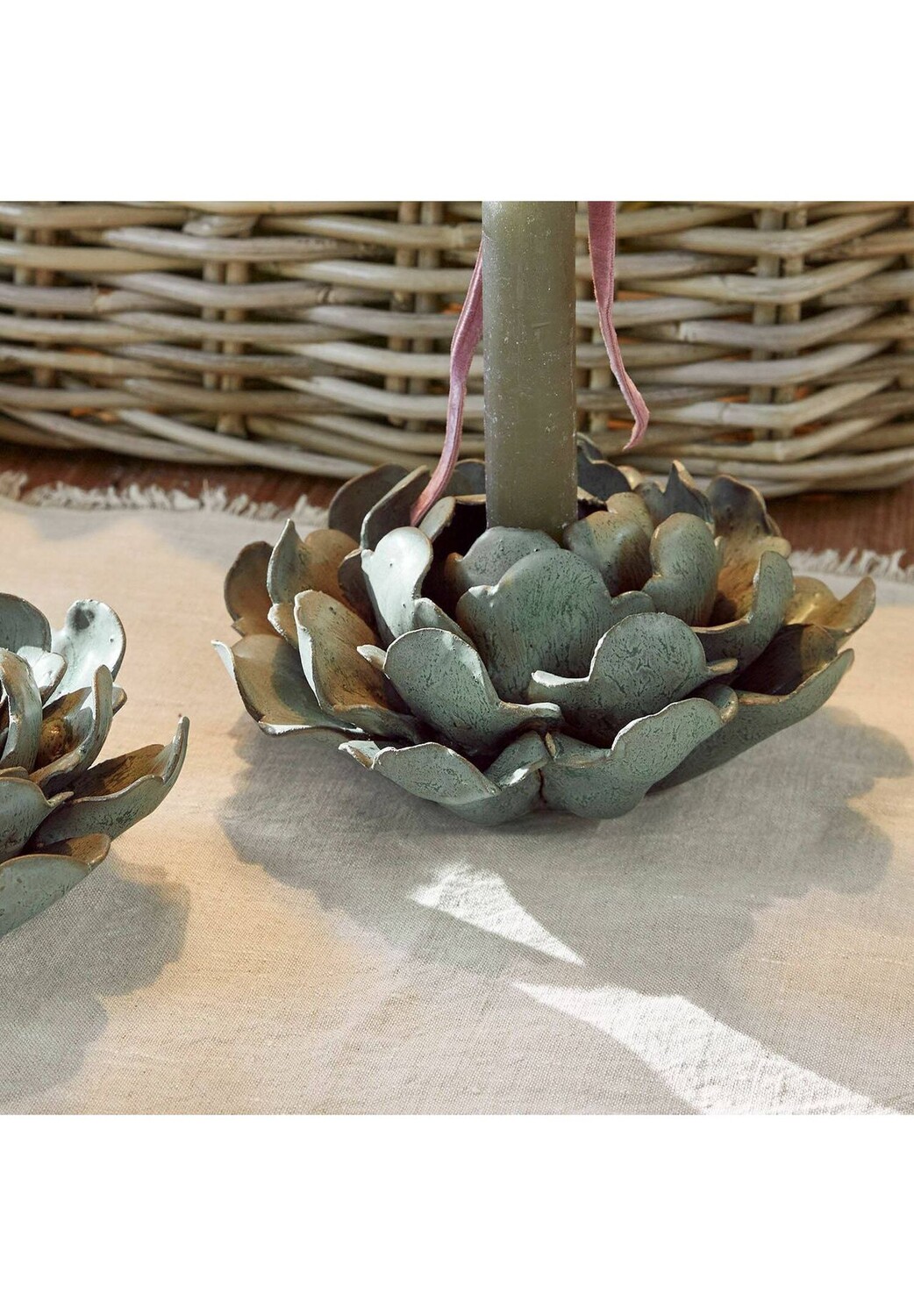 Описание предмета: Зеленая старинная патина на изысканном фарфоре перенесет вас в мир ностальгической элегантности. Каждый стенд уникален и украшен лепестками, расписанными вручную. Декоративная подсветка со свечами или без них. Погрузитесь в очарование ушедших времен с нашим набором из 2 фарфоровых подсвечников. Эти подставки с тонко нанесенной зеленой старинной патиной, которая мягко подчеркивает изогнутые лепестки, создают идеальную сцену для простой красоты ваших конических свечей. Они создают атмосферу ностальгии, не жертвуя при этом современностью. Обратите внимание, что соответствующие свечи-карандаши не входят в комплект поставки.