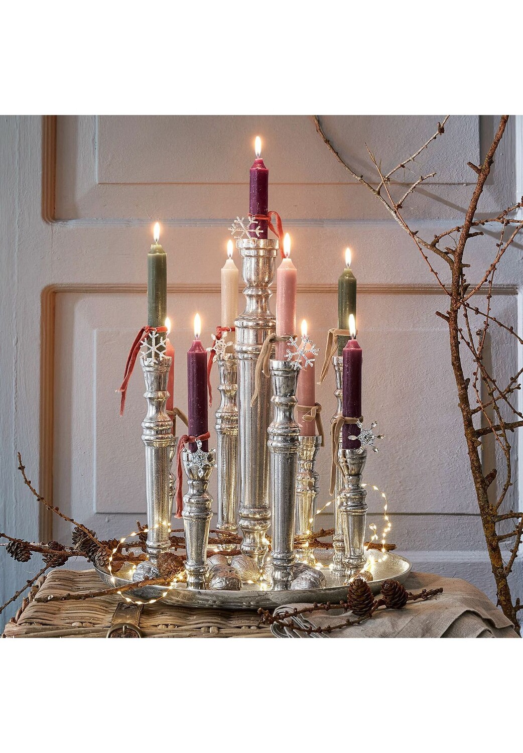 Описание предмета: Чрезвычайно элегантный и стильный. Алюминий с отделкой «античное серебро». Для уютного света и индивидуального оформления. Этот ценный подсвечник с ностальгическим оттенком создаст романтическую атмосферу в вашем доме и станет настоящей декоративной изюминкой, прекрасно сочетающейся с шебби-шиком. В нем можно разместить девять свечей-палочек, а при желании его можно индивидуально украсить дно подноса, например, красивыми камнями, засушенными цветами или другими маленькими сокровищами. Таким образом, вы можете создать прекрасный акцент с неподвластным времени характером на столе или буфете.
