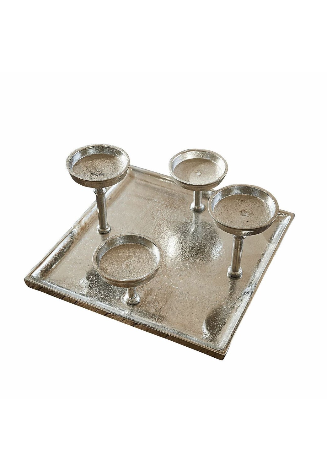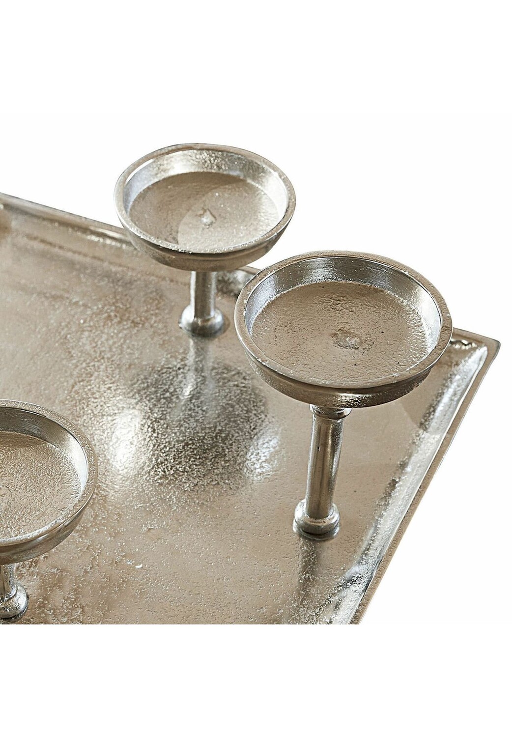 Описание товара: высококачественный литой алюминий типичной структуры. Поднос под подсвечниками предлагает место для творческих идей. Стильный и элегантный. Ожидайте романтического света свечей, когда зажигаются четыре свечи – радость каждого сезона. Привлекательный поднос для свечей подойдет к любому стилю жизни и станет отличным акцентом в качестве украшения стола или на комоде. Вы можете оставить его полностью чистым или украшать его снова и снова в зависимости от сезона, например, рождественскими шарами зимой и пляжными ракушками летом. В любом случае прочная, достаточно тяжелая конструкция прекрасно гармонирует с любой обстановкой.