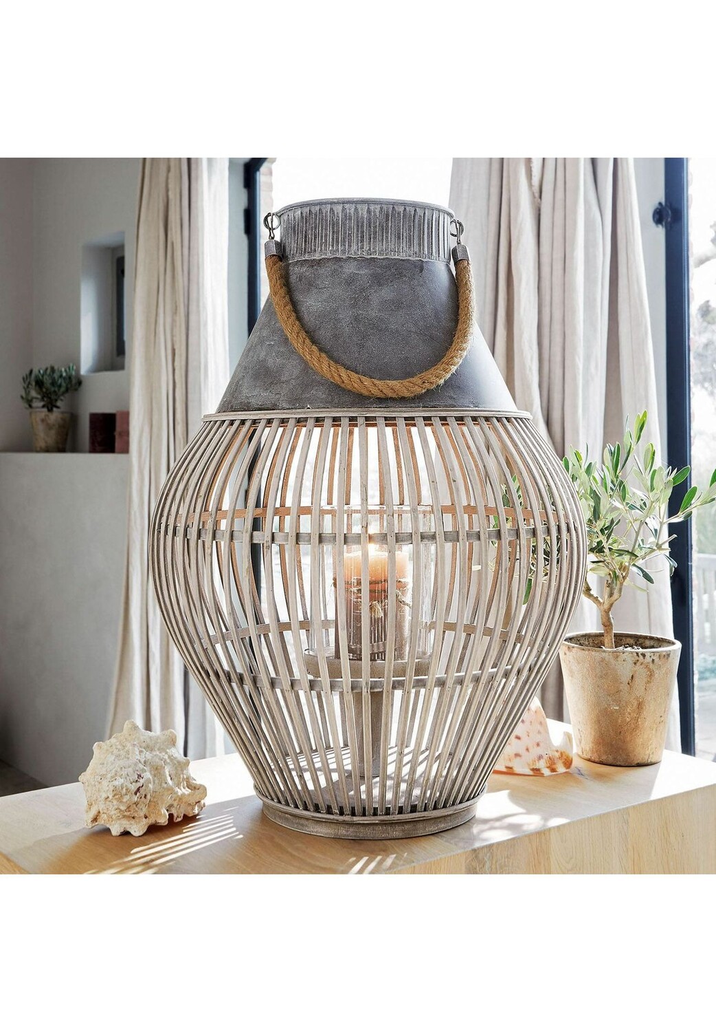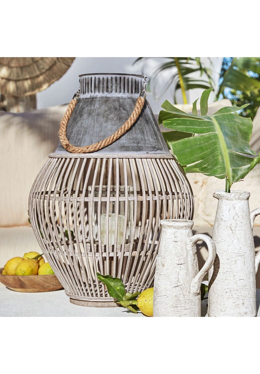 Описание товара: шик в стиле бохо для уютной атмосферы. Каждая модель – это уникальное произведение ручной работы. Встать или повесить трубку. Этот фонарь в модном стиле бохо станет отличным акцентом и атмосферным световым акцентом. Комбинация плетеного бамбукового каркаса в нижней части и цинкового крепления в верхней части делает его особенно привлекательным. Стеклянная вставка внутри придает свече устойчивость. Аксессуар дополняет прочная подвесная веревка, которая также является съемной. Фонарь особенно красиво вписывается в атмосферу богемного или этнического стиля - будь то на террасе или в помещении.