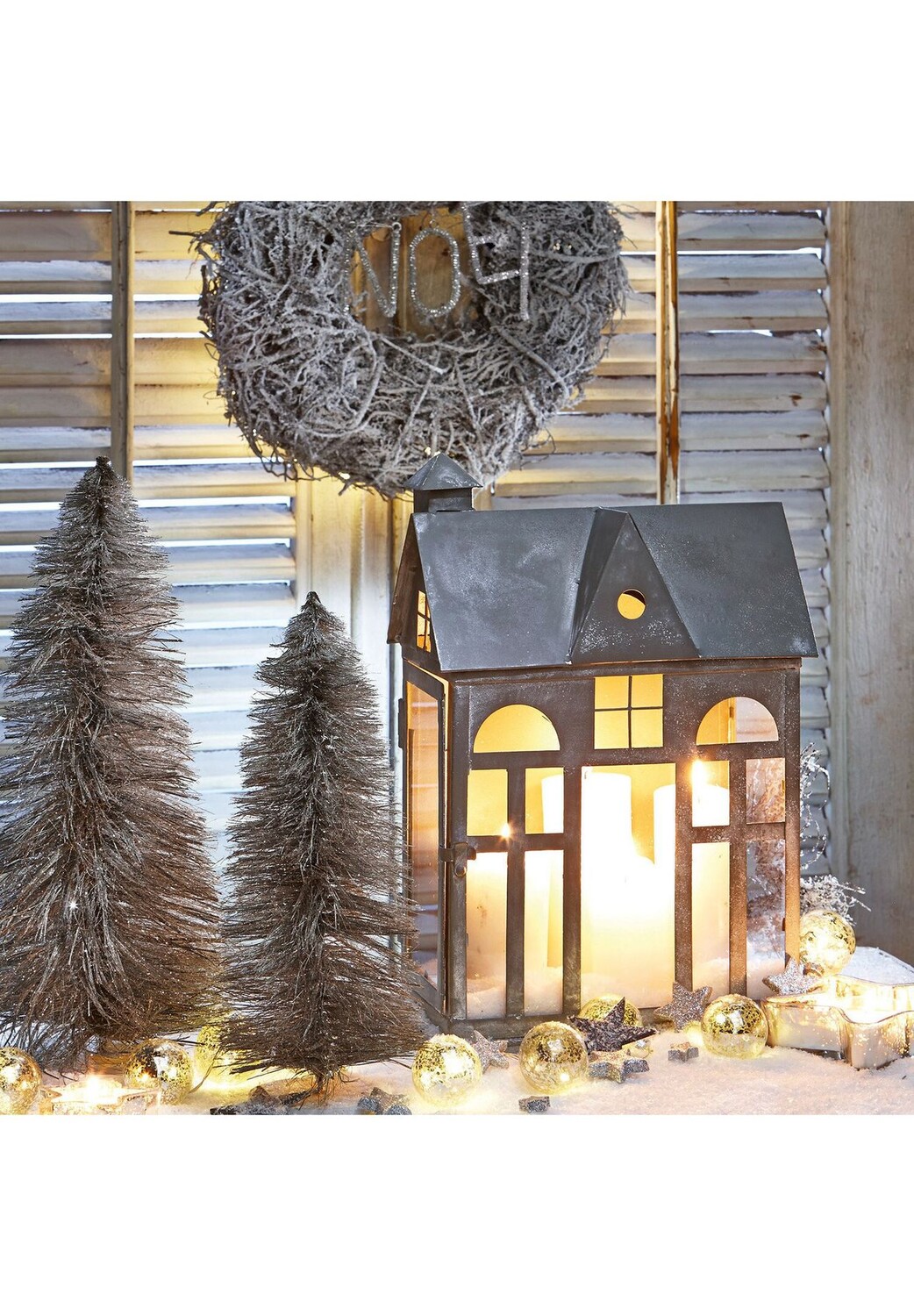 Описание предмета: Железный предмет, выполненный в форме домика, впечатляет качественными стеклянными вставками. Его можно открыть сбоку и наполнить по своему вкусу - несколькими свечами-столбами или зеленью падуба, ели и гирляндой фонарей на батарейках.