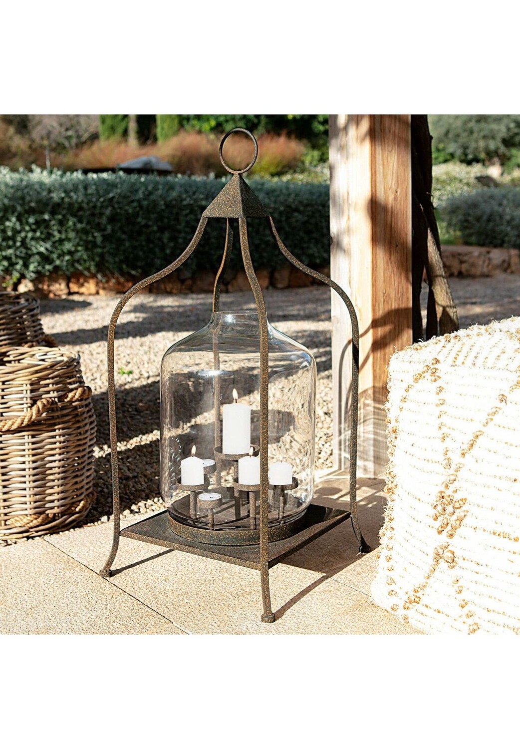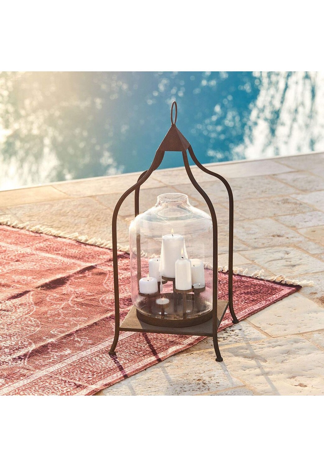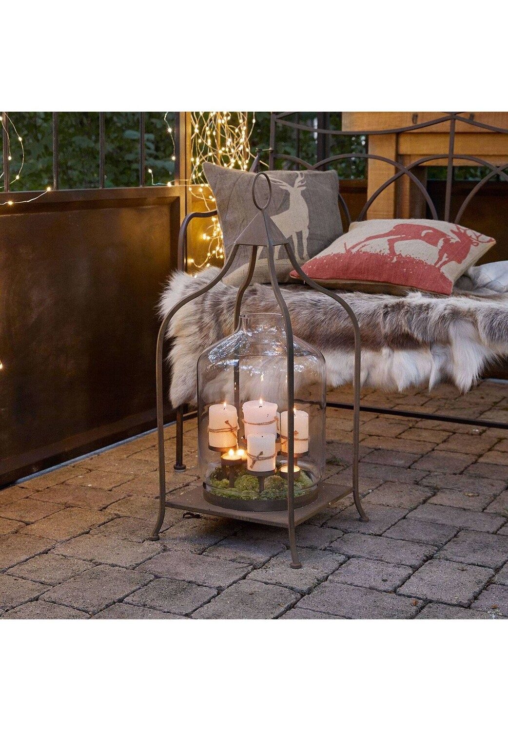 Описание предмета: коллекционный предмет в восточном стиле с антикварной отделкой. Филигранный, элегантный и в то же время прочный и долговечный. Можно разместить или повесить в помещении и на открытом воздухе. Этот фонарь из стали и стекла отличается открытым, воздушным дизайном с восточными элементами. Прочная стальная рама имеет искусную форму и очень изящную форму. Он прекрасно гармонирует с прозрачным стеклянным корпусом, защищающим свечи от ветра и непогоды. Кстати говоря: стеклянный колокол можно снять, чтобы получить неограниченный доступ к семи подсвечникам. Однако не обязательно использовать свечи или чайные свечи. Как насчет светодиодной гирлянды и небольших декоративных фигурок? что вы кладете на отдельные тарелки?