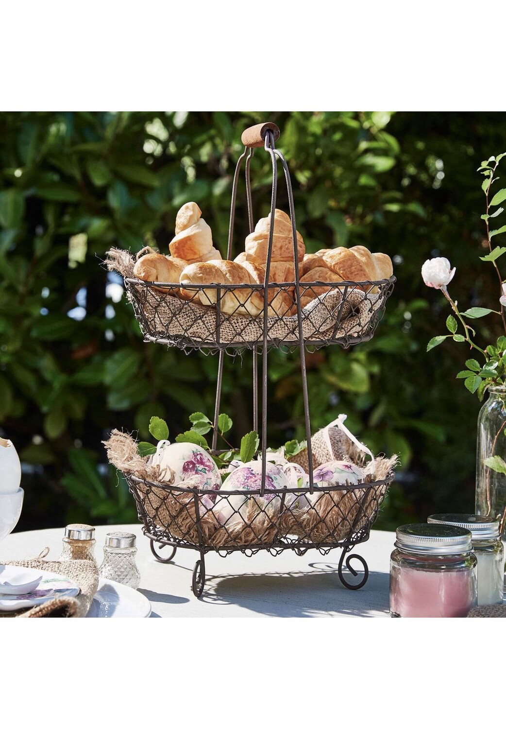 Описание предмета: Созданный с любовью аксессуар из железной проволоки. Игривый дизайн. С удобной деревянной ручкой. Подставка для торта, изготовленная из искусно обработанной железной проволоки, излучает ностальгический и очаровательный стиль и отлично сочетается с интерьерами, такими как стиль загородного дома или кантри-шик. Этот полезный аксессуар можно легко поднять за привлекательную деревянную ручку и переносить из одной комнаты в другую. Будь то завтрак с круассанами и баночками варенья или бранч-шведский стол со сладкой выпечкой – у вас есть много вариантов его использования. Этот аксессуар также прекрасно подойдет в качестве декоративной корзины для фруктов или красивой подставки для специй. Тот, кто любит игривые детали в романтическом стиле, больше не захочет оставаться без этого милого маленького помощника.