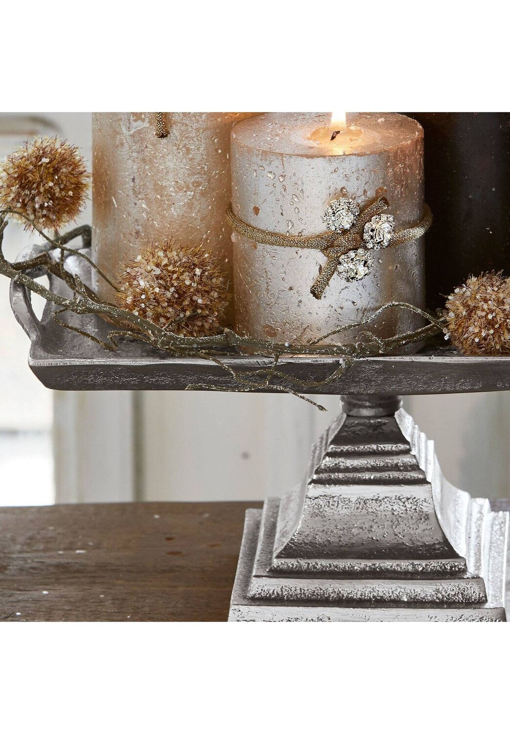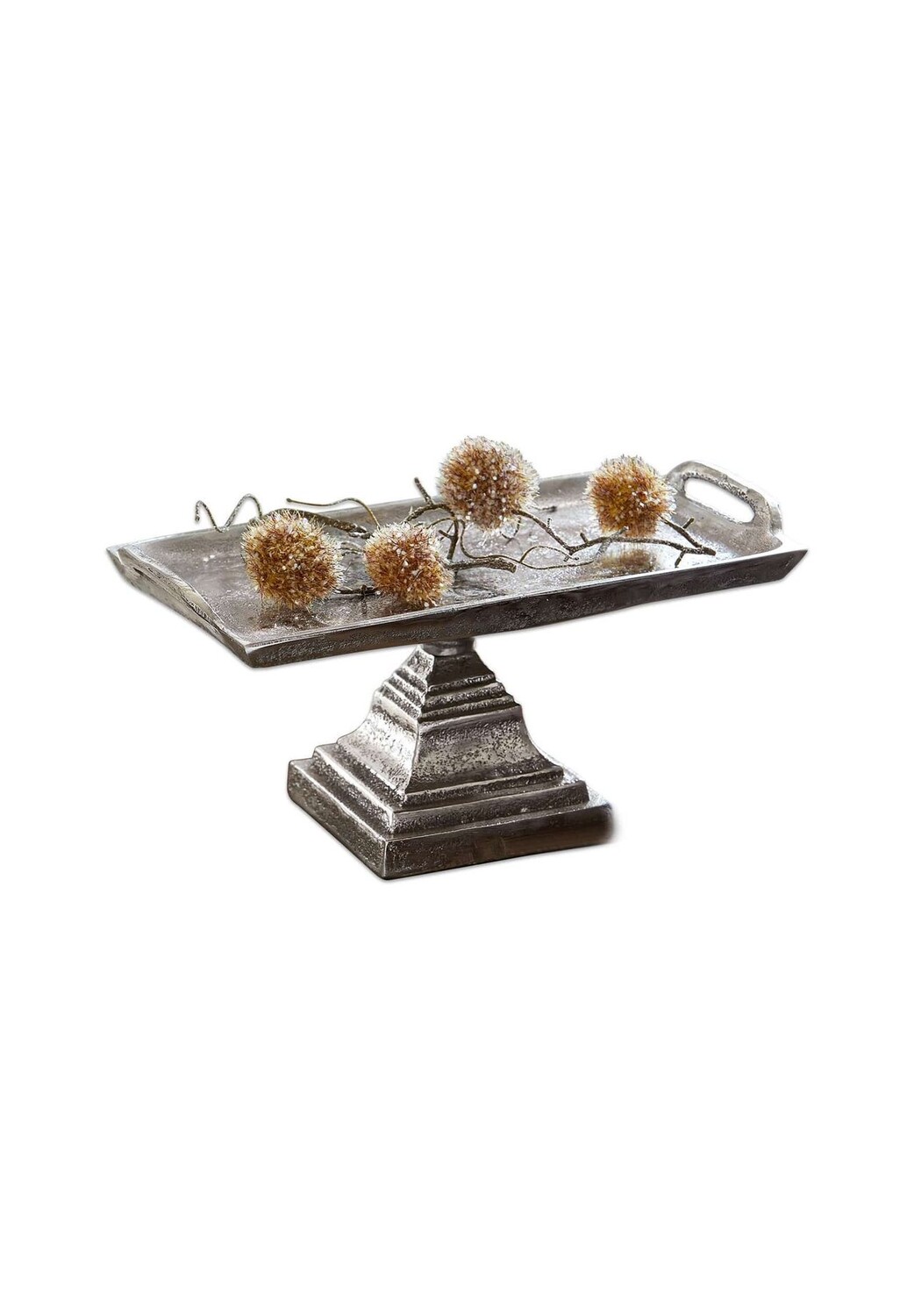 Описание предмета: Благодаря прекрасной структуре поверхности эта сервировочная тарелка из литого алюминия со старинной отделкой становится главной достопримечательностью. Градуированная основа, занимающая очень мало места, придает украшению неповторимый характер. Войлочная отделка на нижней стороне защищает поверхности вашей мебели. Очень элегантный внешний вид для украшения и многого другого. Эта красивая подставка для торта из классического алюминия имеет очень индивидуальную структуру и красивый серебряный блеск. Украшенная свечами, свежими цветами в подходящих вазах или наполненная фруктами — эта подставка для торта придаст стильную атмосферу обеденному столу или буфету.