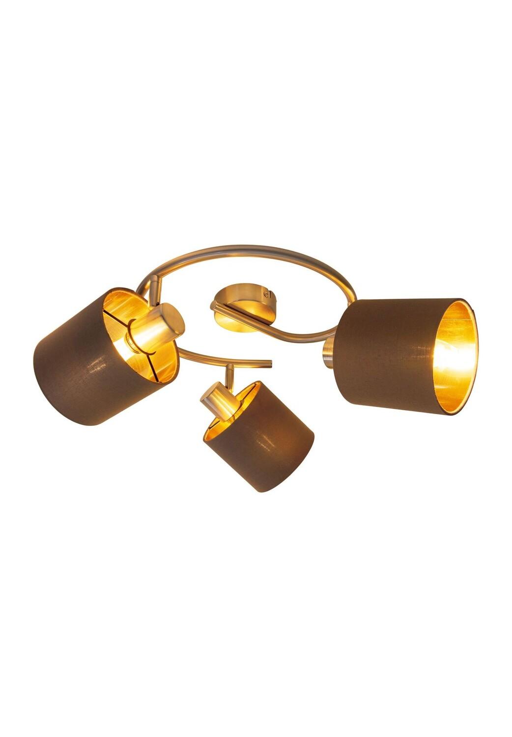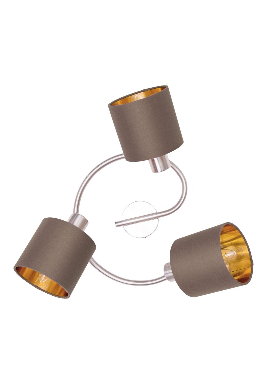 Искл. 3x E14 макс. 40 Вт 220–240 В~ / 50 Гц IP20 / SKI Д: прибл. 52 см / В: прибл. 21 см Рама: прибл. : прибл. 11 см / Г: прибл. 12 см. Капюшон: В: прибл. 5 см/Д: ​​прибл. 8 см Материал: Сталь/Текстиль Абажур: Металл: 70% / TC: 8% / ПВХ: 22% Цвет: сатиновый никель/коричневый/золото
