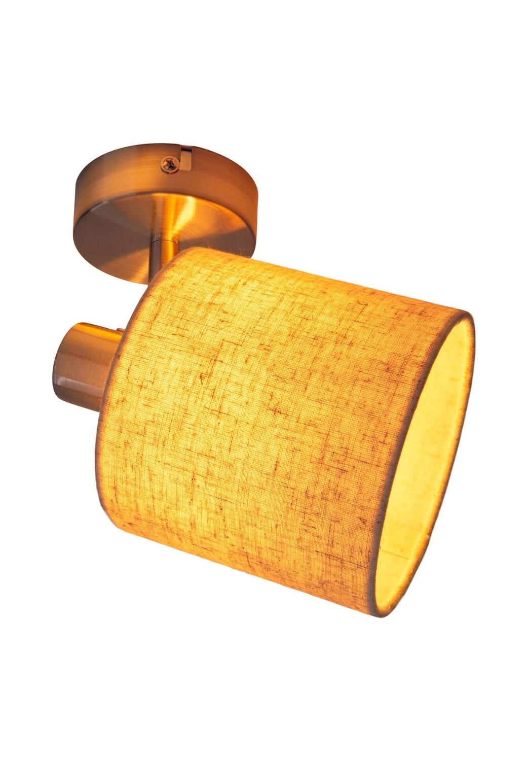 Макс. 1x E14. 40 Вт искл. Источник света 220-240В~ 50Гц IP20/SKI Всего: длина: 15см; б: 12см; высота: 18,5 см. Абажур: г: 12 см; высота: 11см, балдахин: d: 8см; высота: 2,5 см. Материал: сталь. Абажур текстиля: Металл: 70% / ТК: 8% / ПВХ: 22% Цвет: коричневый; внутри: золото; сатиновый никель