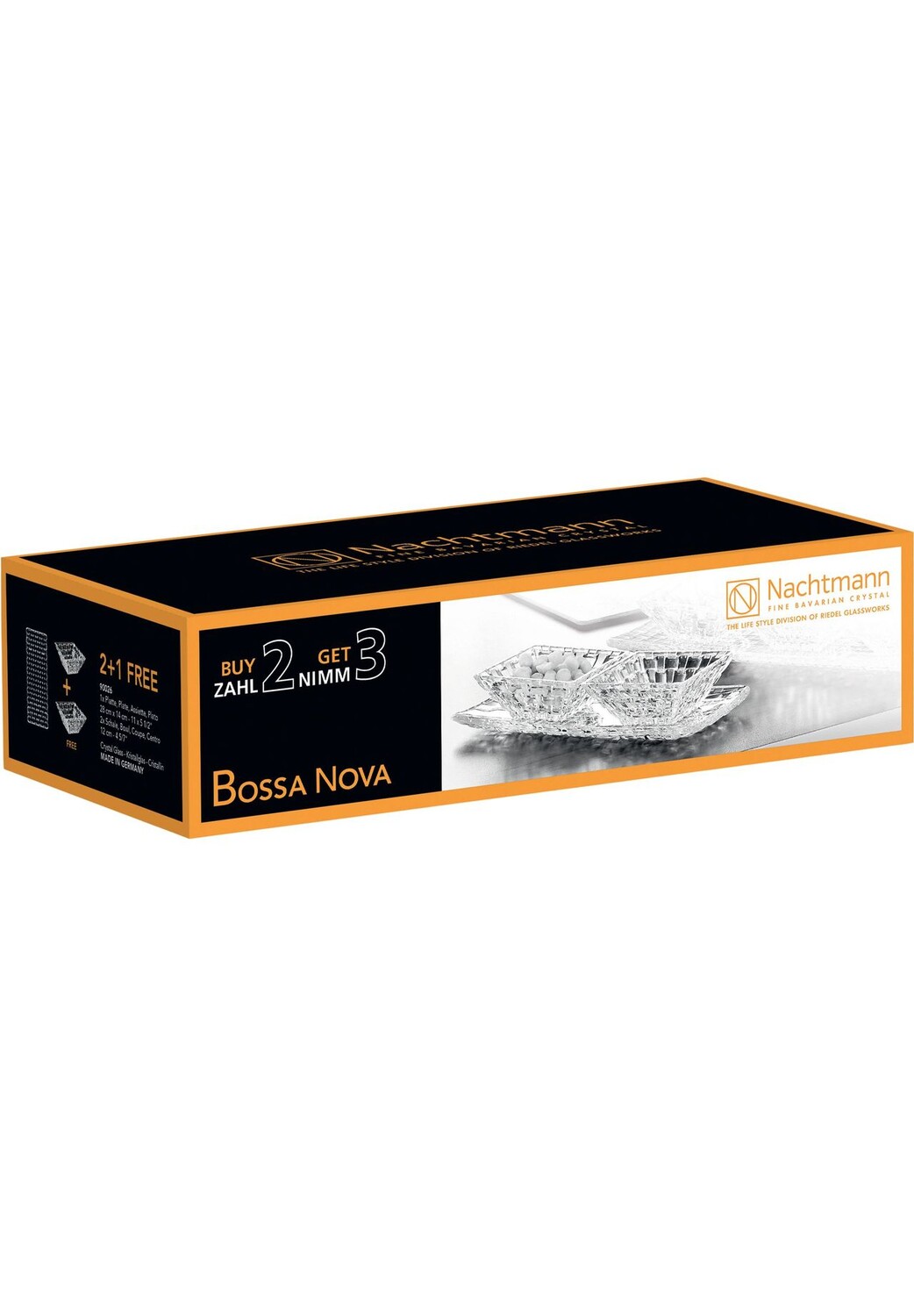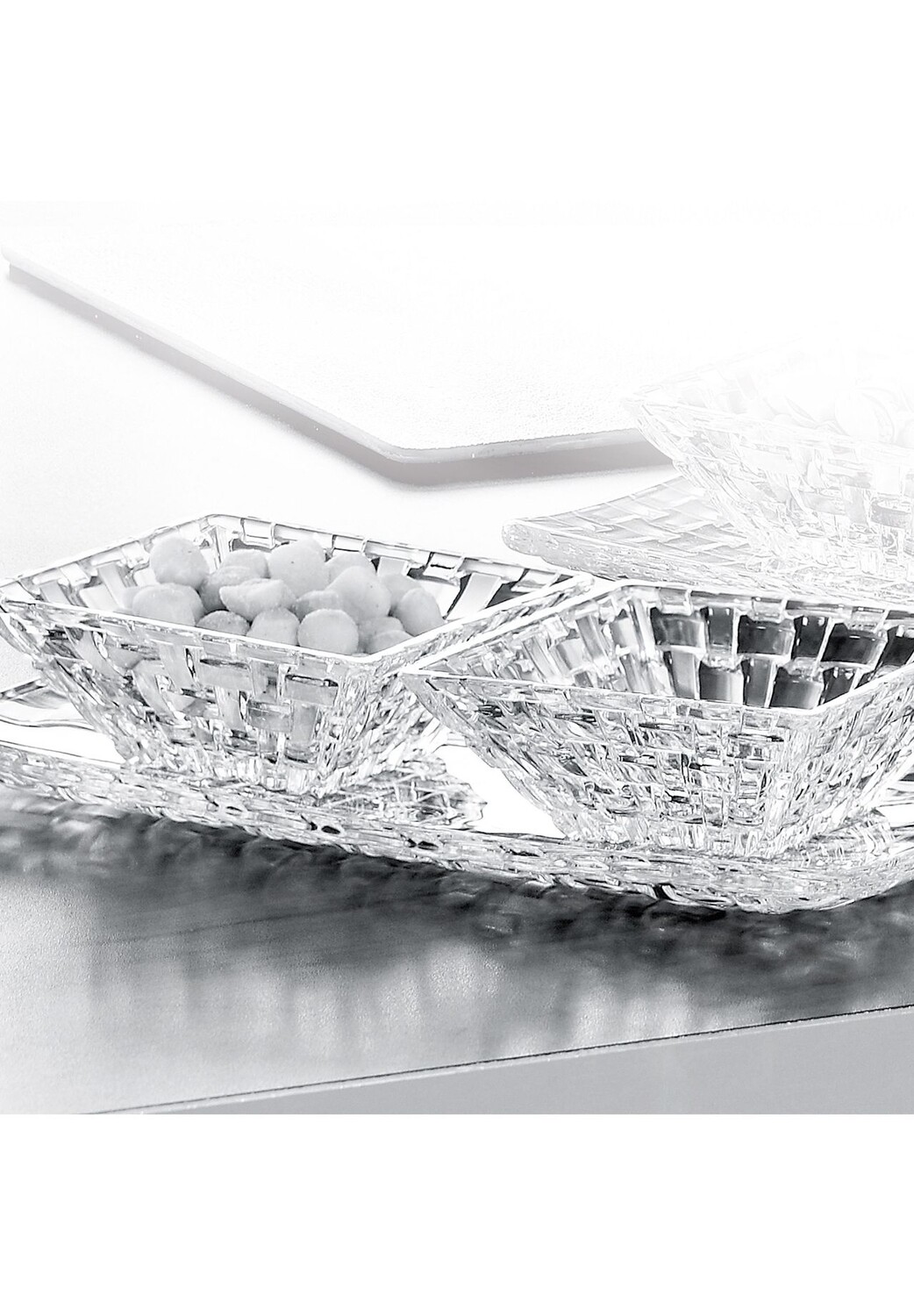 Комплект поставки: 2 миски 12 см, 1 хрустальная тарелка 28x14 см