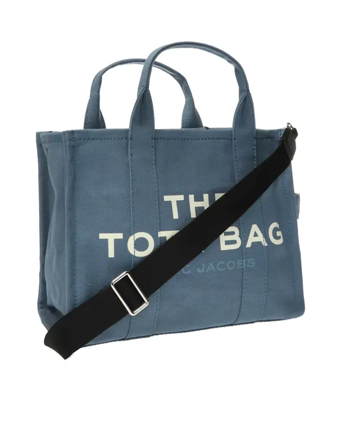 Синяя сумка The Medium Tote от Marc Jacobs. Изготовлен из холста. Можно закрыть на молнию. Украшен печатным бело-синим логотипом. Имеет две полукруглые ручки, регулируемый ремень через плечо и внутреннее отделение с одним отделением и двумя накладными карманами. Высота: 14 см Ширина: 30 см Размеры модели Рост: 176 см Грудь: 85 см Талия: 60 см Бедра: 89 см