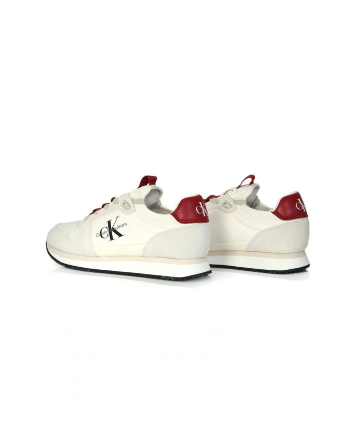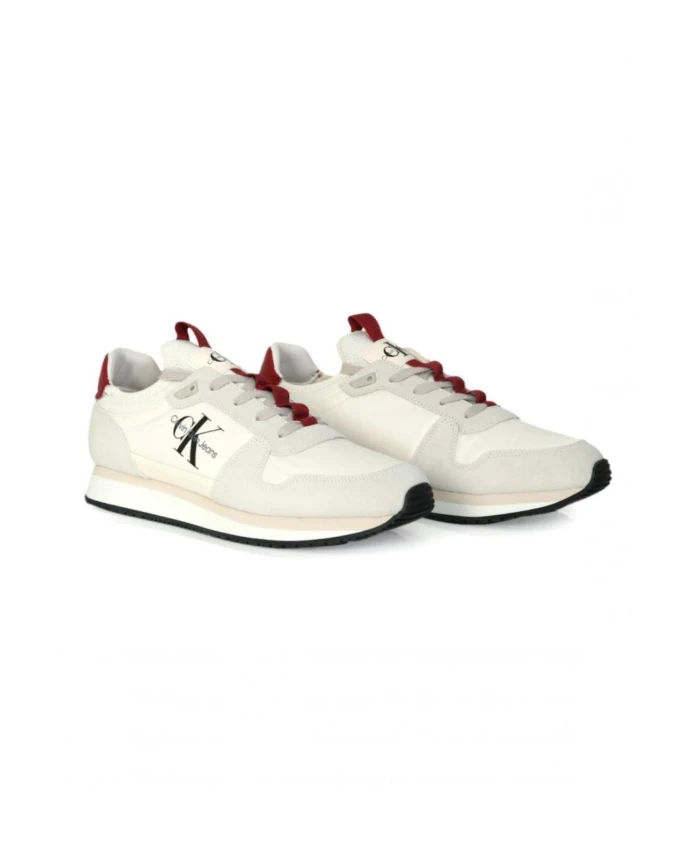 Сделайте свой кроссовок еще лучше с мужскими кроссовками Calvin Klein Runner Sock. Эти кроссовки бежевого цвета выполнены из сочетания замши и ткани, застежки на шнурке и контрастной белой резиновой подошвы. Логотип бренда заметно расположен сбоку, на язычке и пятке, а бордовая отделка придает нотку изысканности.