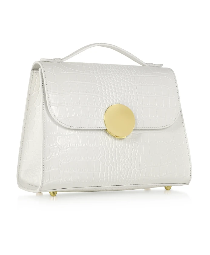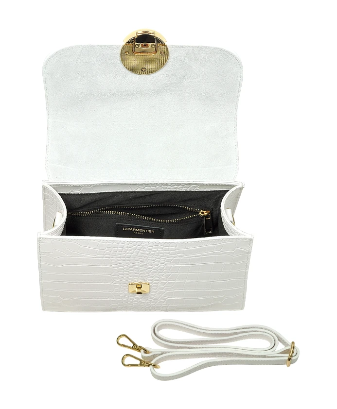 Добавьте нотку винтажного гламура в свой наряд с помощью сумки-сэтчел из кожи с тиснением под крокодила Bombo от Le Parmentier. Эта изысканная сумка, изготовленная с безупречным мастерством, имеет клапан на кнопке и фурнитуру геометрической формы. Он оснащен верхней ручкой и съемным ремешком, поэтому вы можете иметь свободные руки, когда захотите. Сумка также имеет внутренний карман на молнии, защитные ножки и золотистую фурнитуру. Изготовлено вручную в Италии из высококачественной кожи с тиснением под крокодила. Размеры 25х18х10 см идеально подходят для хранения самых необходимых вещей.