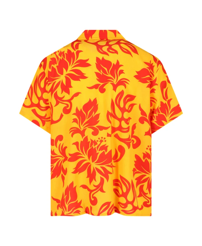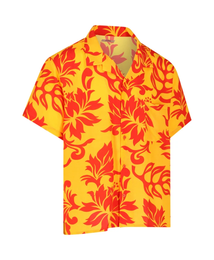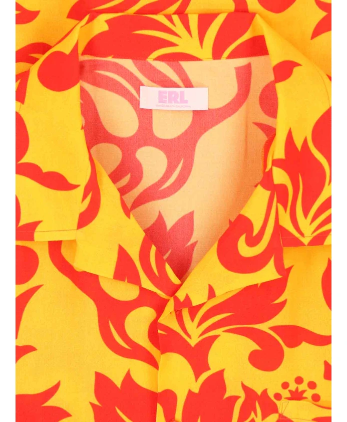 Представляем рубашку ERL с короткими рукавами ярко-оранжевого цвета с контрастным красным принтом по всей поверхности. Эта классическая рубашка, изготовленная из смеси вискозы Ecovero на 51% и вискозы на 49%, имеет кубинский воротник, застежку на пуговицы и материалы с низким уровнем воздействия на окружающую среду.