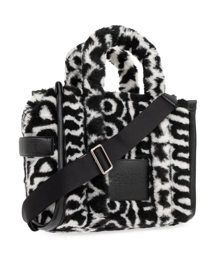 Черно-Белая сумка на плечо Medium Tote Bag от Marc Jacobs. Эта модель из искусственного меха и кожи с отделкой из кожи застегивается на молнию и украшена монограммным узором. В комплект входит съемный регулируемый ремень через плечо, две полукруглые ручки, серебристая металлическая фурнитура и внутреннее отделение с двумя накладными карманами и карманом на молнии. Высота: 26 см. Ширина: 32 см. Размеры модели. Рост: 176 см. Грудь. Рост: 85 см. Талия: 60 см. Бедра: 89 см.
