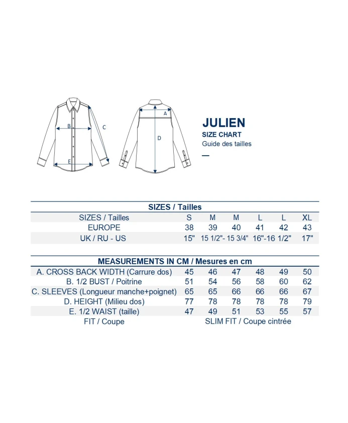 Чувство элегантности Ines de la Fressange Paris воплощено в линии мужских рубашек! Голубая рубашка Julien имеет прямой, слегка приталенный крой, подчеркивающий силуэт, но не сковывающий его, итальянский воротник и высококачественный 100% хлопковый поплин, мягкий и шелковистый на ощупь. Каждая деталь была тщательно продумана: планка с пуговицами на подкладке и отстрочкой, двубортные манжеты и тесьма с подписью Ines de la Fressange Paris для придания дополнительной индивидуальности. Эту рубашку можно носить в повседневном стиле поверх брюк или дополнить костюм или деловой наряд с открытым воротником или галстуком. Представьте себе это в одиночестве или под курткой. Он подходит как для повседневного использования, так и для особых случаев, что делает его обязательным элементом мужского гардероба – гарантированная элегантность в любой ситуации! Состав: 100% хлопок. Мужская рубашка из поплина. Прямой крой. Итальянский воротник. Простроченная петля. Американский воротник. Длинные рукава. Кокетка сзади. Фирменная тесьма. Разработано в Париже.