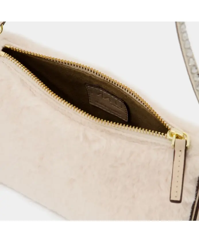 Представляем сумку Manu Atelier Mini Prism из кожи цвета слоновой кости — идеальную сумку через плечо для следящей за модой женщины. Эта сумка, изготовленная из мягкой телячьей кожи и искусственного меха, стильная и удобная для ношения. Сочетание бежевого и цвета слоновой кости универсально и легко сочетается с любым нарядом. Верхняя ручка имеет длину 20 см, а плечевой ремень позволяет легко переносить сумку. Верхняя застежка-молния обеспечивает сохранность ваших вещей, а подкладка с эффектом замши добавляет роскоши. Эта сумка шириной 8, высотой 12 и длиной 22 — идеальный размер для повседневных вещей. Тканевые детали включают искусственный мех из мягкой телячьей кожи и ткань, украшенную искусственными кристаллами.