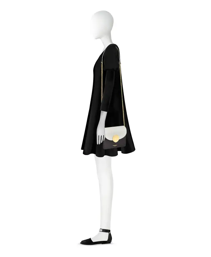 Представляем новую мини-сумку через плечо Le Parmentier Ondina Color Block, стильный аксессуар для современной женщины. Эта сумка, изготовленная из гладкой натуральной итальянской телячьей кожи, имеет тонкий силуэт и компактный размер, идеально подходит для ношения самых необходимых мелочей днем или ночью. Откидной верх с круглой застежкой-кнопкой, цепочка и кожаный ремень на плечо, внутренний карман, отстрочка в тон и золотистая фурнитура. Эта сумка, изготовленная вручную в Италии, излучает элегантность и изысканность. Размеры: 17см х 13см х 8см.