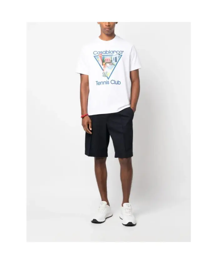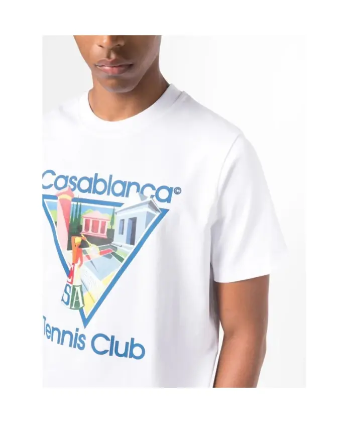 Обновите свой повседневный стиль с помощью этой белой мужской футболки Casablanca с короткими рукавами La Joueuse. Изготовленная из 100% хлопка, она имеет принт спереди, классический круглый вырез и свободный крой.