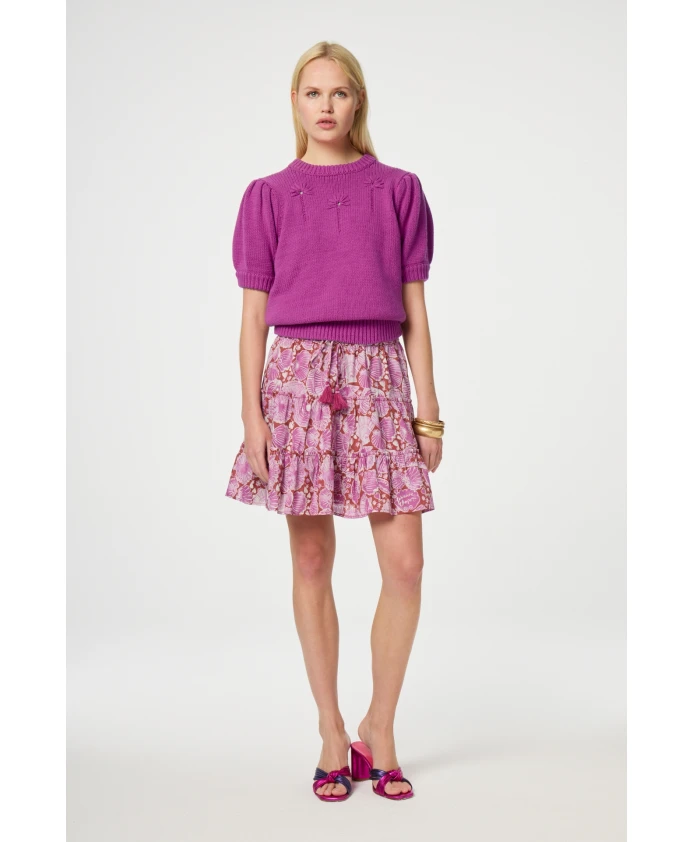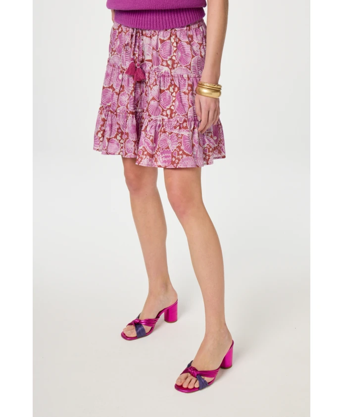 Женская юбка с тонким мыском plooien voegt в каждом наряде, с красно-розовым принтом. Эта мини-юбка из 100 % органического хлопка имеет свободный крой и стильную закругленную талию, обеспечивающую комфорт и изысканность. Создайте повседневный шикарный наряд из юбки, которая сочетается с пуловером Raf и мюлями Monica с узлом, идеально подходящими для этого случая.