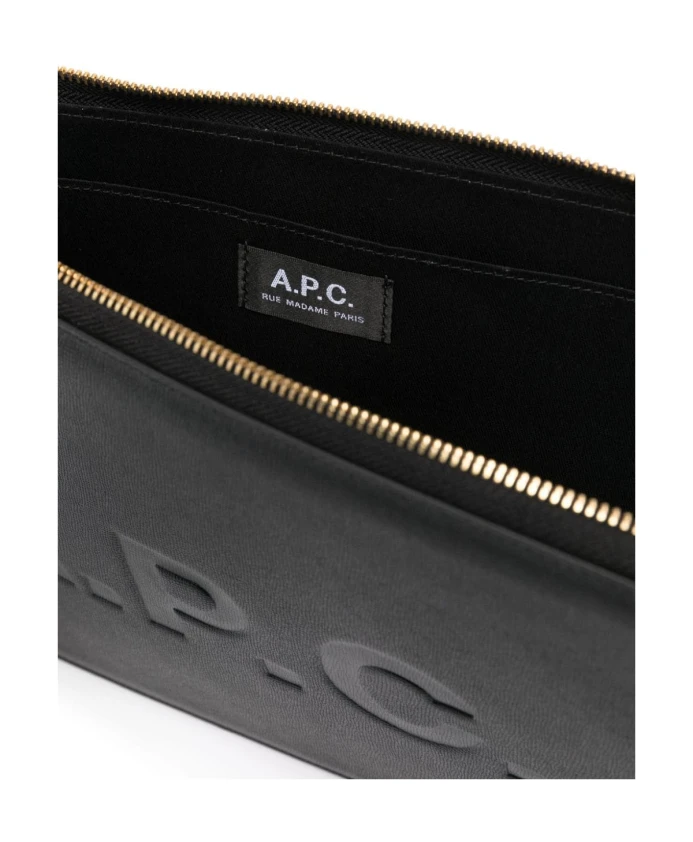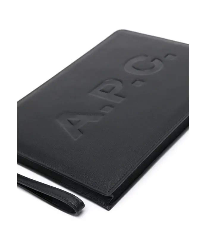 Кожаный клатч с тисненым логотипом A.P.C., черный