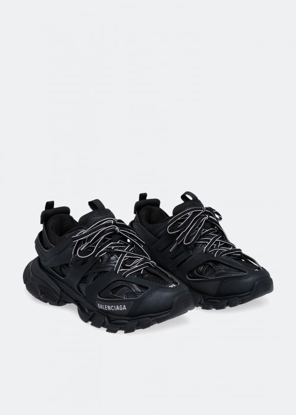 Кроссовки Track от Balenciaga, вдохновленные высококлассными моделями обуви, сочетают спортивный силуэт с массивной резиновой подошвой. Шнуровка в тон и деталь в клетку придают им стильный вид.