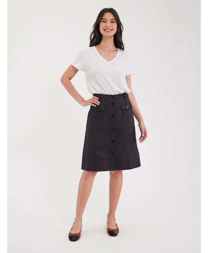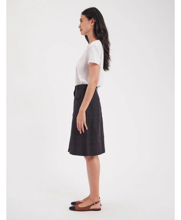 Юбка с пуговицами Rachel, трапециевидный крой, высокая талия, длина до колена, планка на пуговицах спереди, карманы с клапанами на пуговицах, стеганые детали.
