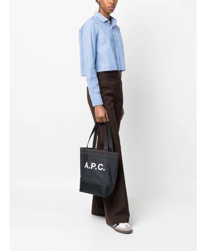 Джинсовая сумка тоут на кожаной основе A.P.C., синий