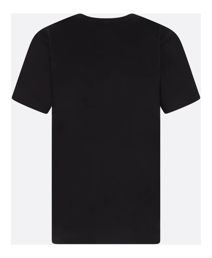 Откройте для себя женскую футболку Comme des Garçons PLAY из черного хлопкового трикотажа с принтом в виде сердца на груди. Эта футболка с круглым вырезом, короткими рукавами и прямым подолом идеально подходит для повседневного и стильного образа.