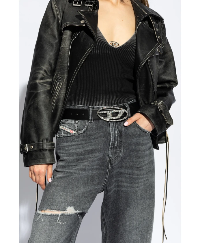 Ремень кожаный овальный d с логотипом b 1др Diesel, черный
