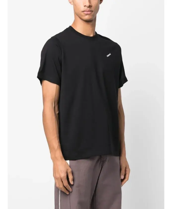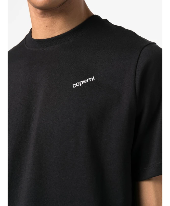 Обновите свой повседневный гардероб с помощью этой футболки с вышитым логотипом от Coperni. Эта футболка из черного хлопкового трикотажа имеет вышитый логотип на груди, круглый вырез, короткие рукава и прямой подол. Эта одежда идеально сидит на женщинах и имеет правильный размер. Модель ростом 1,75 м носит размер S. Приобретите ее прямо сейчас и с легкостью усовершенствуйте свой повседневный стиль.