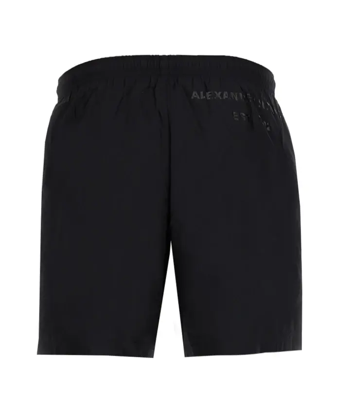 Приготовьтесь стильно плавать в этих черных нейлоновых шортах для плавания от Alexander McQueen. Эти повседневные шорты, изготовленные из ткани MAN POLYAMIDE SWIMWEAR, идеально подходят любому мужчине, который ценит комфорт и моду.