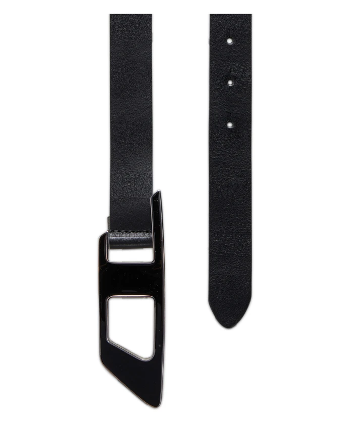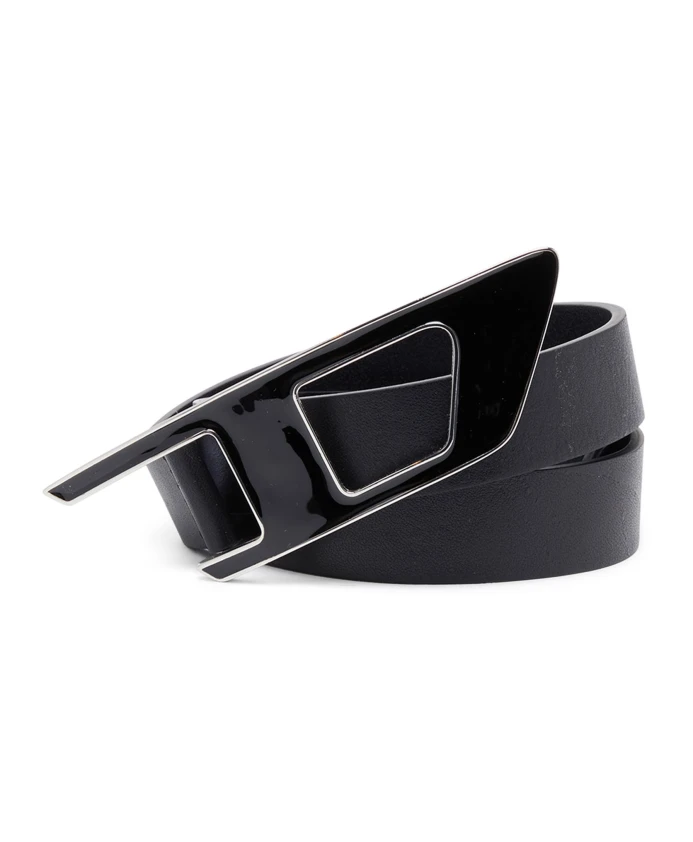 Кожаный ремень с эмалированной D застежкой Diesel, черный