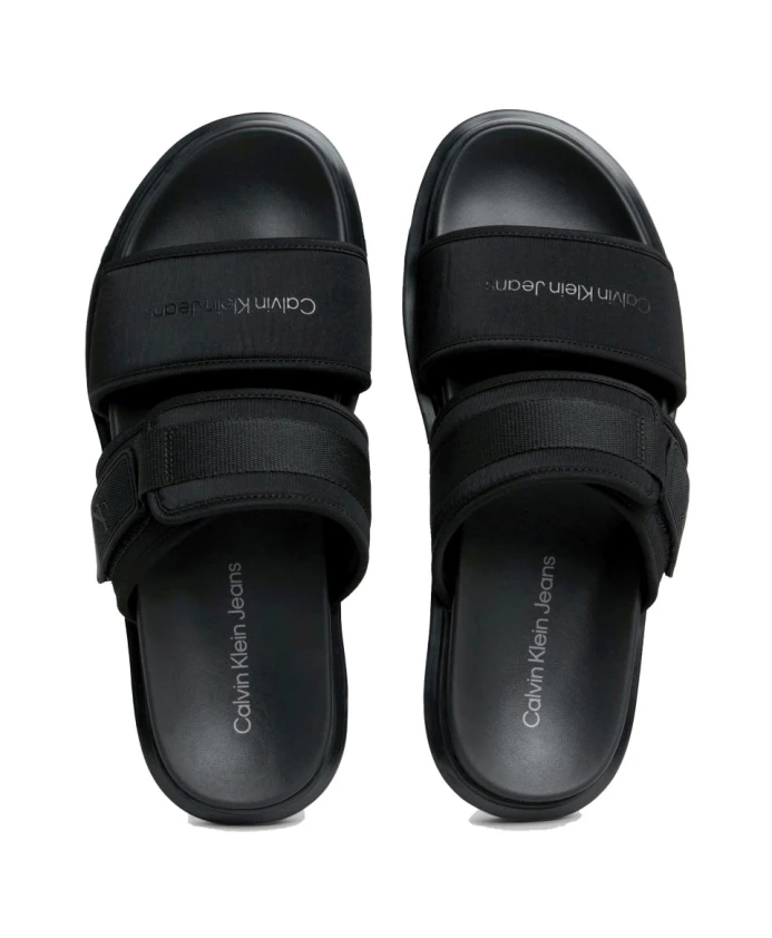 Мужские черные сандалии на плоской подошве Calvin Klein Jeans. Внешний материал: 87 % полиэстер, 13 % эластан. Подкладка: синтетическая ткань. Подошва: резина. продукт