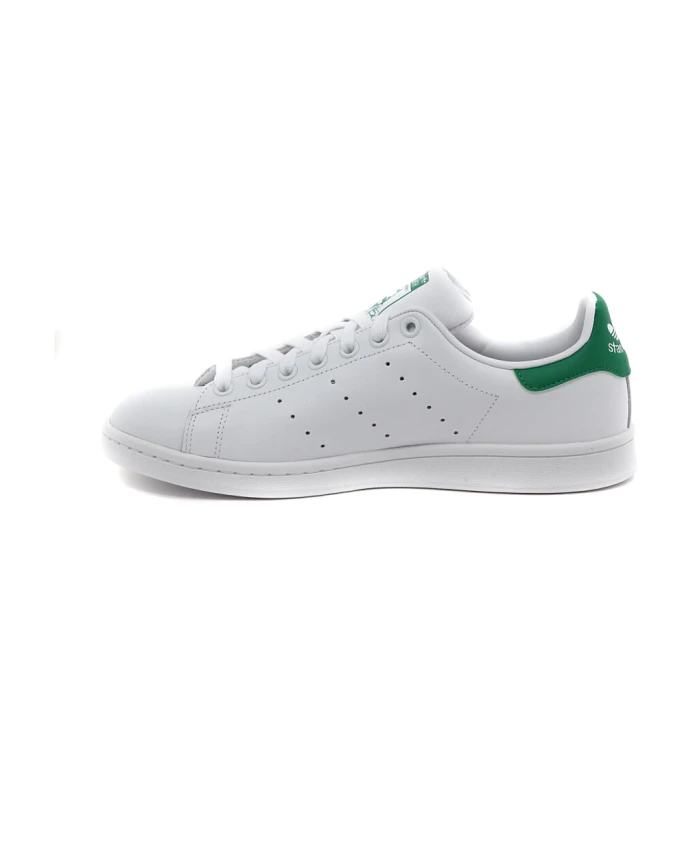 Сделайте свой кроссовок еще более ярким с этими мужскими белыми низкими кроссовками Stan Smith Adidas Originals. Эти стильные и удобные кроссовки из веганской кожи со шнуровкой, зеленым логотипом на пятке, логотипом на язычке и перфорированными полосками по бокам.