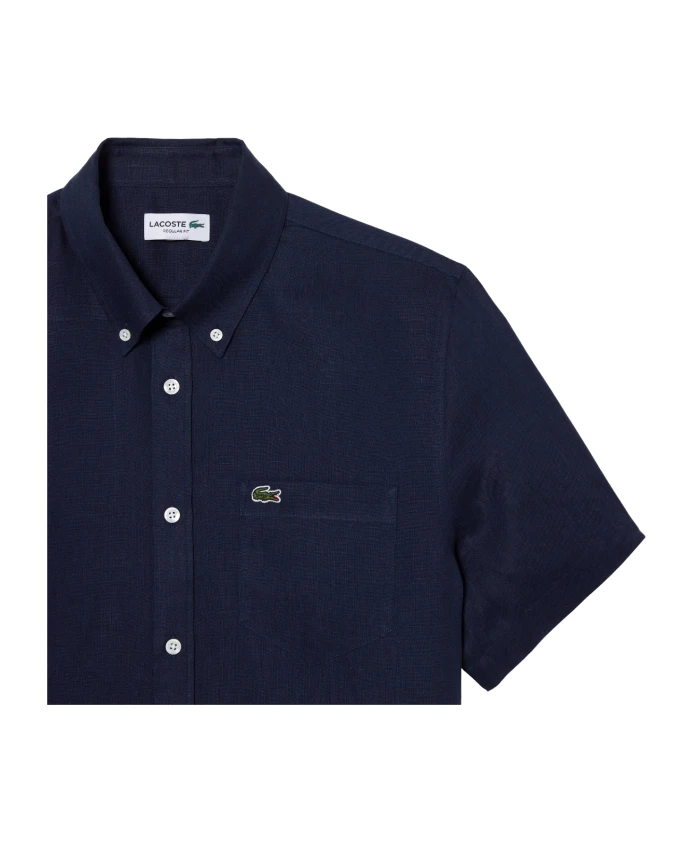 Обновите свой гардероб этой высококачественной рубашкой с короткими рукавами Lacoste. Эта легкая и универсальная рубашка из 100% льна имеет классический крой, прямой крой, перламутровые пуговицы, нагрудный карман и вышитый на груди легендарный зеленый крокодил.
