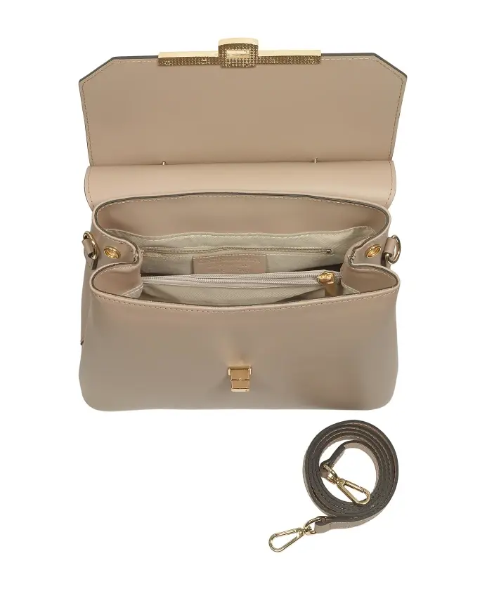 Представляем сумку-саквояж Atlanta из натуральной кожи с верхней ручкой и плечевым ремнем от Le Parmentier. Эта сумка – настоящая классика в современной интерпретации, идеально подходящая для модной женщины. Изготовленная из гладкой натуральной итальянской телячьей кожи, она излучает элегантность и изысканность. Поворотный замок надежно защитит ваши вещи, а единственная ручка для переноски с привлекательными деталями на винтах придаст сумке оригинальный вид. В этой сумке с двумя отделениями и центральным карманом на молнии достаточно места для всего необходимого. Съемный плечевой ремень позволяет создавать разнообразные варианты стиля. Эта сумка, дополненная металлической фурнитурой золотистого цвета, выглядит эффектно. Изготовленный вручную в Италии, он демонстрирует исключительное мастерство. Размеры: 26см х 21см х 10см.