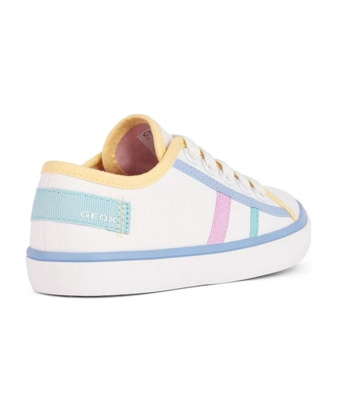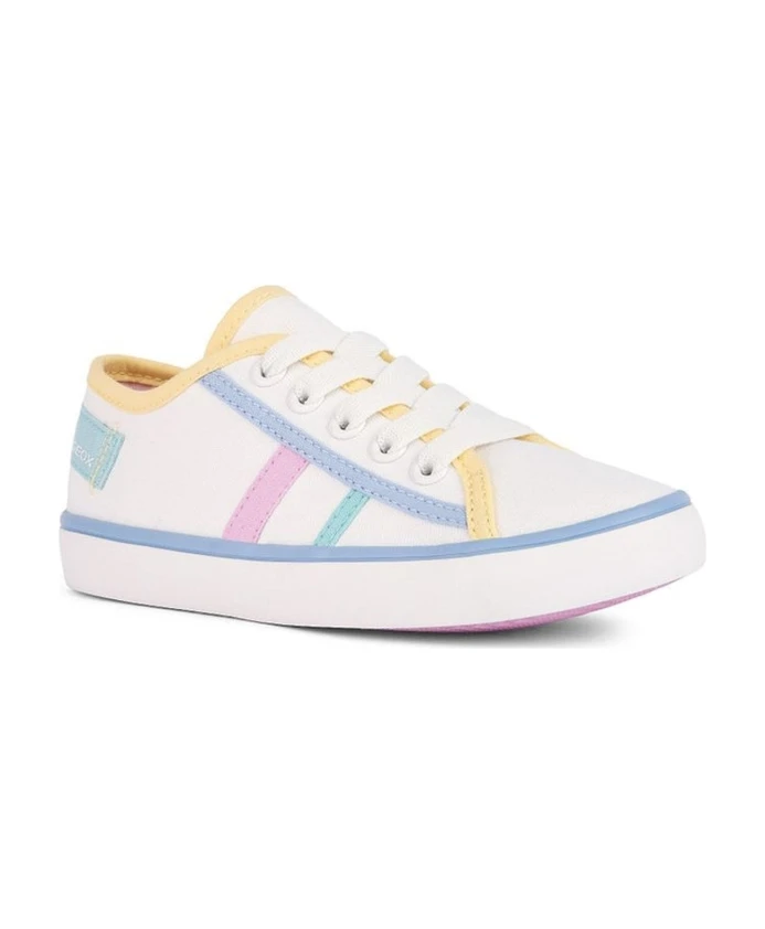 Geox Girls White Sneakers – Стильные и удобные кроссовки для девочек от Geox. Верх из 100 % полиэстера, подкладка из 93 % хлопка и 7 % микрофибры, подошва из 100 % резины. Идеально подходит для активных детей. продукт