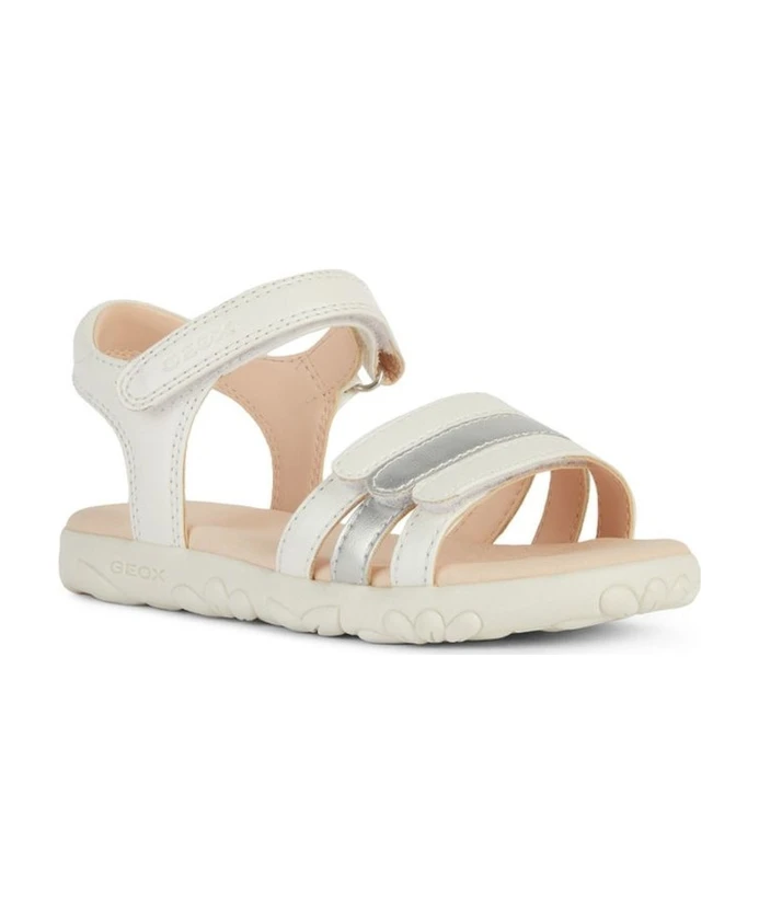 Купите стильные сандалии для девочек Geox белого цвета. Эти сандалии идеально подходят для детей. Верх и подкладка из 100 % полиуретана, а подошва — из 100 % термопластической резины. продукт
