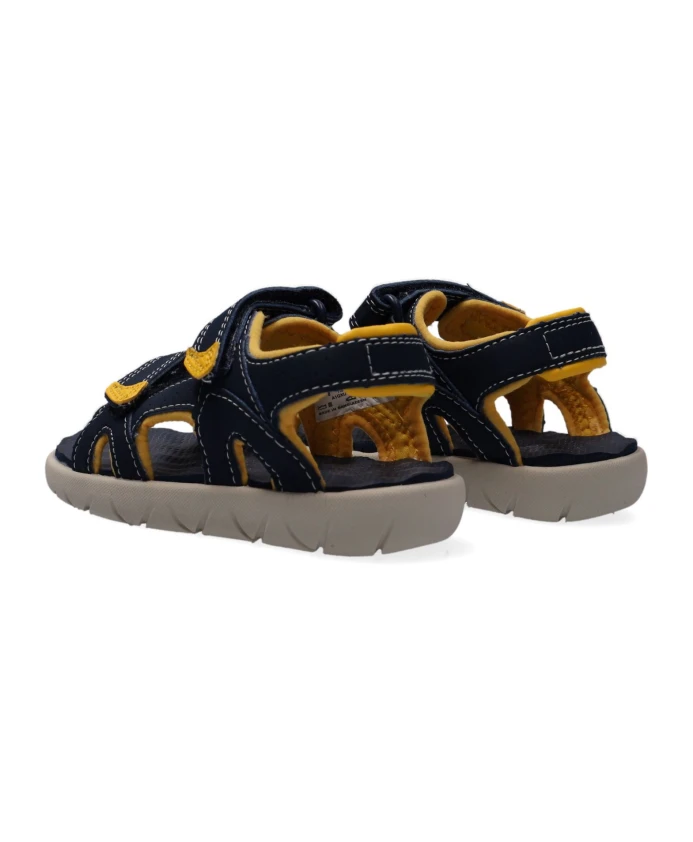 Будьте готовы к приключениям с этими удобными сандалиями для мальчиков Timberland Perkins Row с двумя ремешками! Сине-желтая водоотталкивающая отделка под кожу дополнена застежкой-липучкой. Резиновая стелька и подошва обеспечивают долговечность при любых видах активного отдыха, будь то на пляже, в воде или на улице.