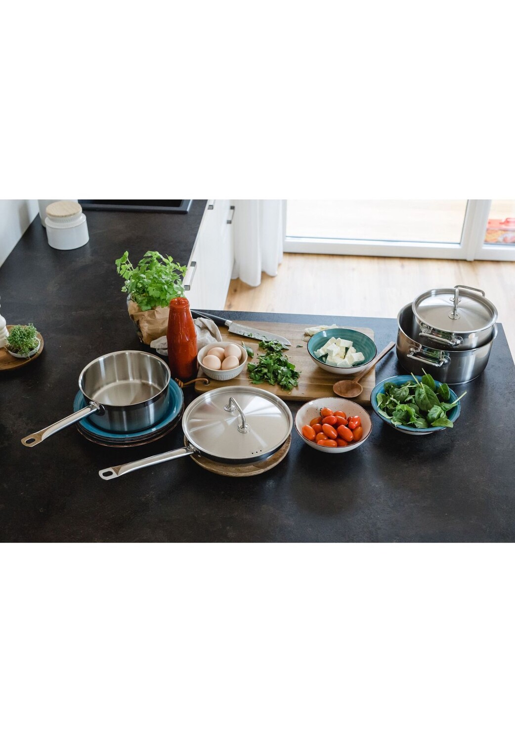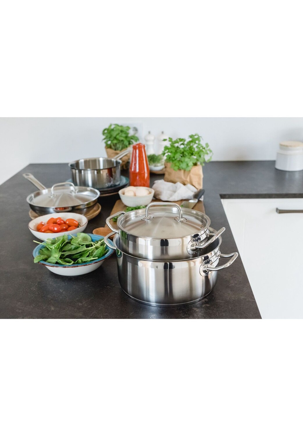 Нержавеющая сталь 18/10, можно использовать в духовке до 240°C
