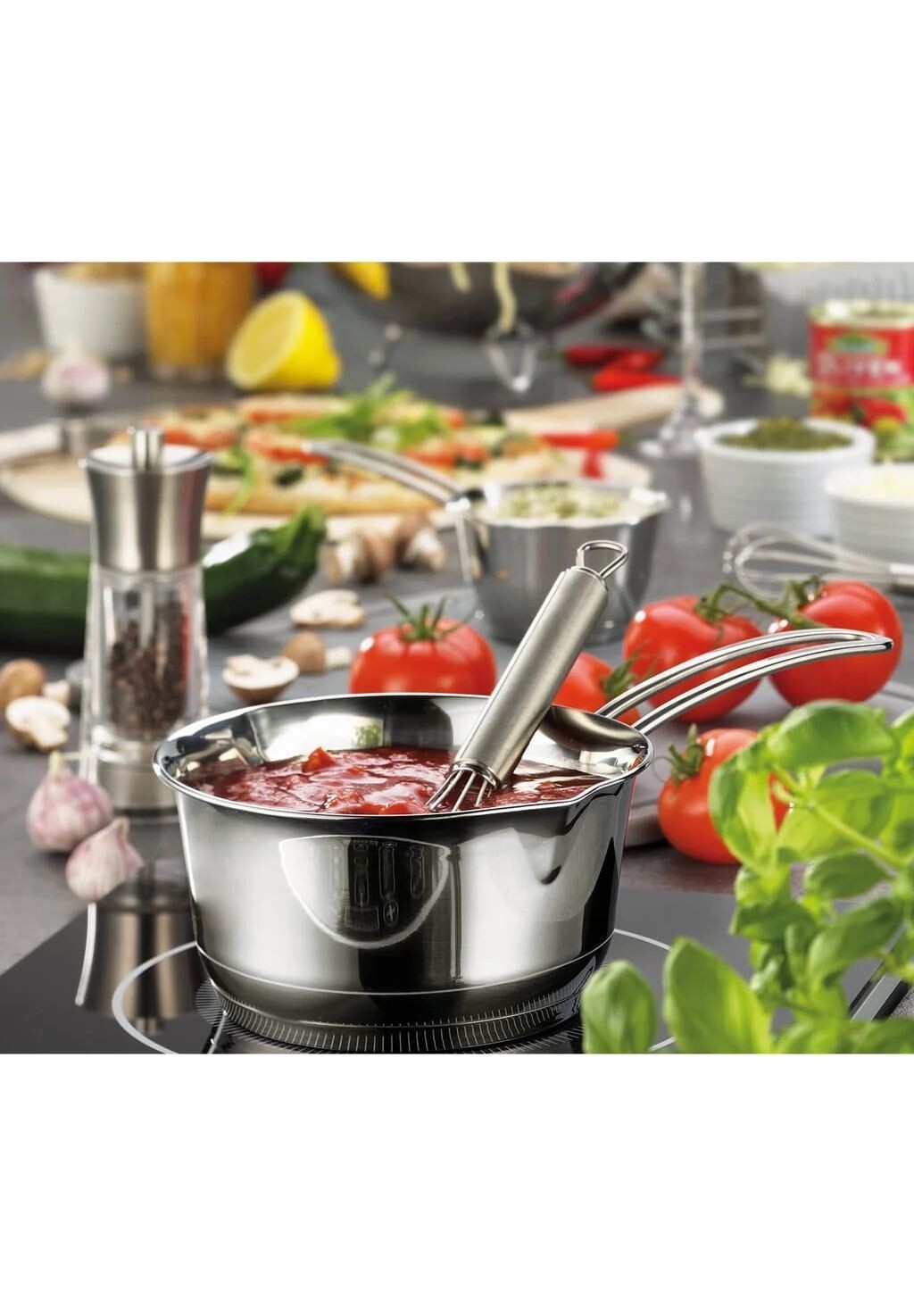 Описание товара: Без них макаронам или спарже чего-то не хватает. Правильный соус сделает блюдо идеальным. В масленках и кастрюлях KÜCHENPROFI можно легко приготовить подрумяненное сливочное масло и сливочно-сливочные соусы. Кастрюли из нержавеющей стали имеют сэндвич-основание. Он ровно лежит на плите и быстро нагревается. Ручки достаточно длинные и их легко держать. Внутреннее масштабирование сосудов удобно при приготовлении и измельчении соусов. Масленки и кастрюли доступны в двух размерах и подходят для всех типов плит, включая индукционные. Кастрюля от Küchenprofi с длинной ручкой изготовлена ​​из нержавеющей стали. Насадка внутри особенно практична.