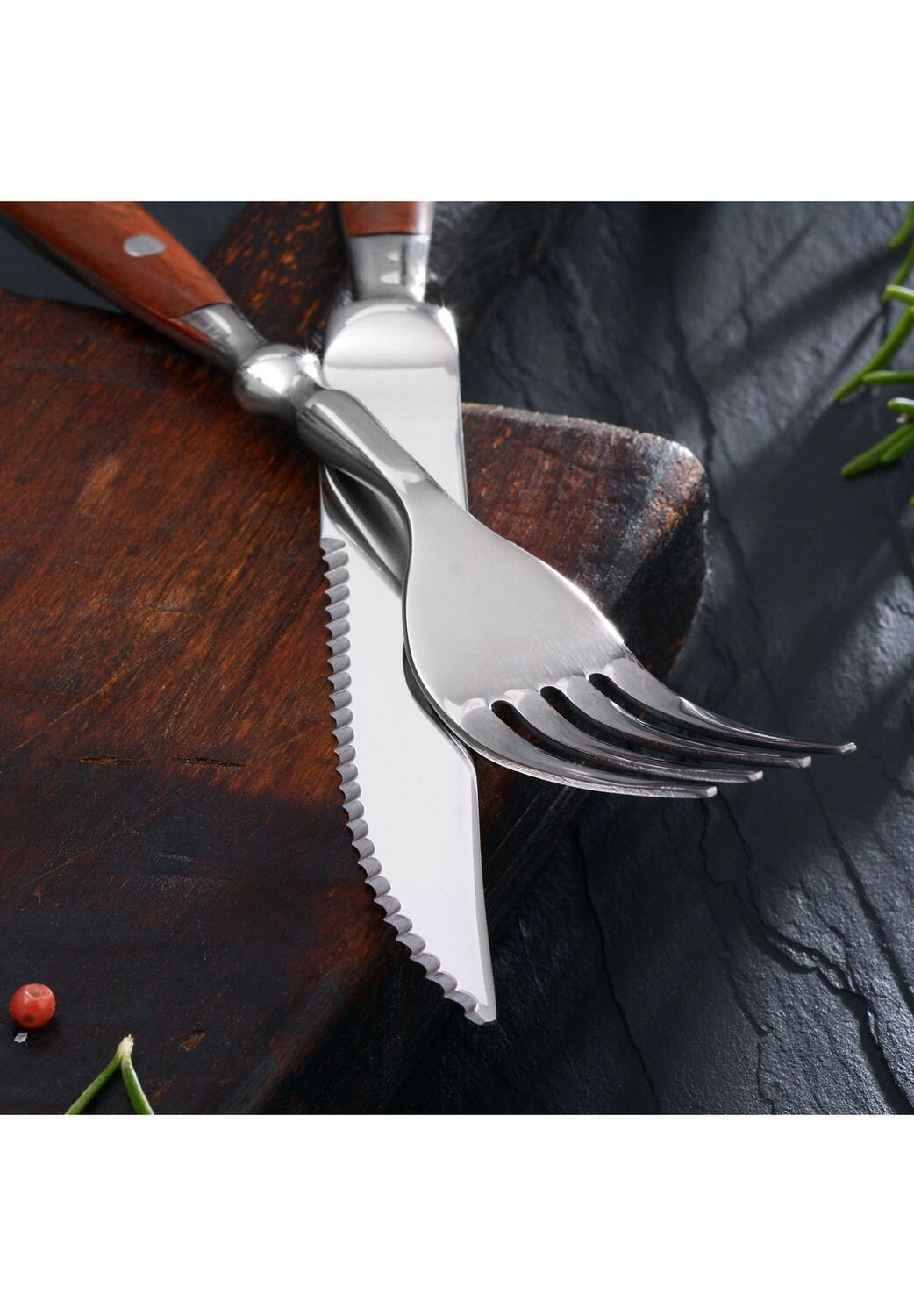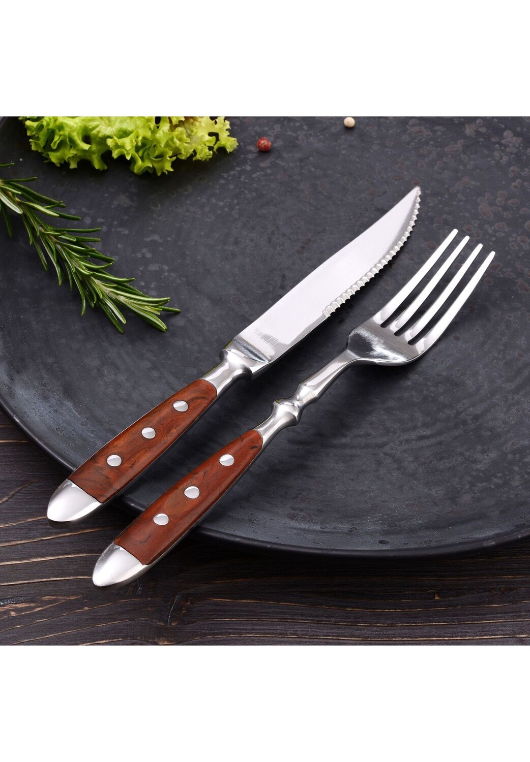 Описание товара: Столовые приборы для стейка в деревенском стиле на 6 персон в стиле кантри. Благодаря большому весу столовые приборы удобно держать. Зубчатые ножи для стейка позволяют легко разрезать мясные волокна. Комплект поставки: 6 ножей для стейка, длина: ок. 21,5 см, вес: ок. 60 г; 6 вилок, длина: около 20 см, толщина ручки: около 11 мм