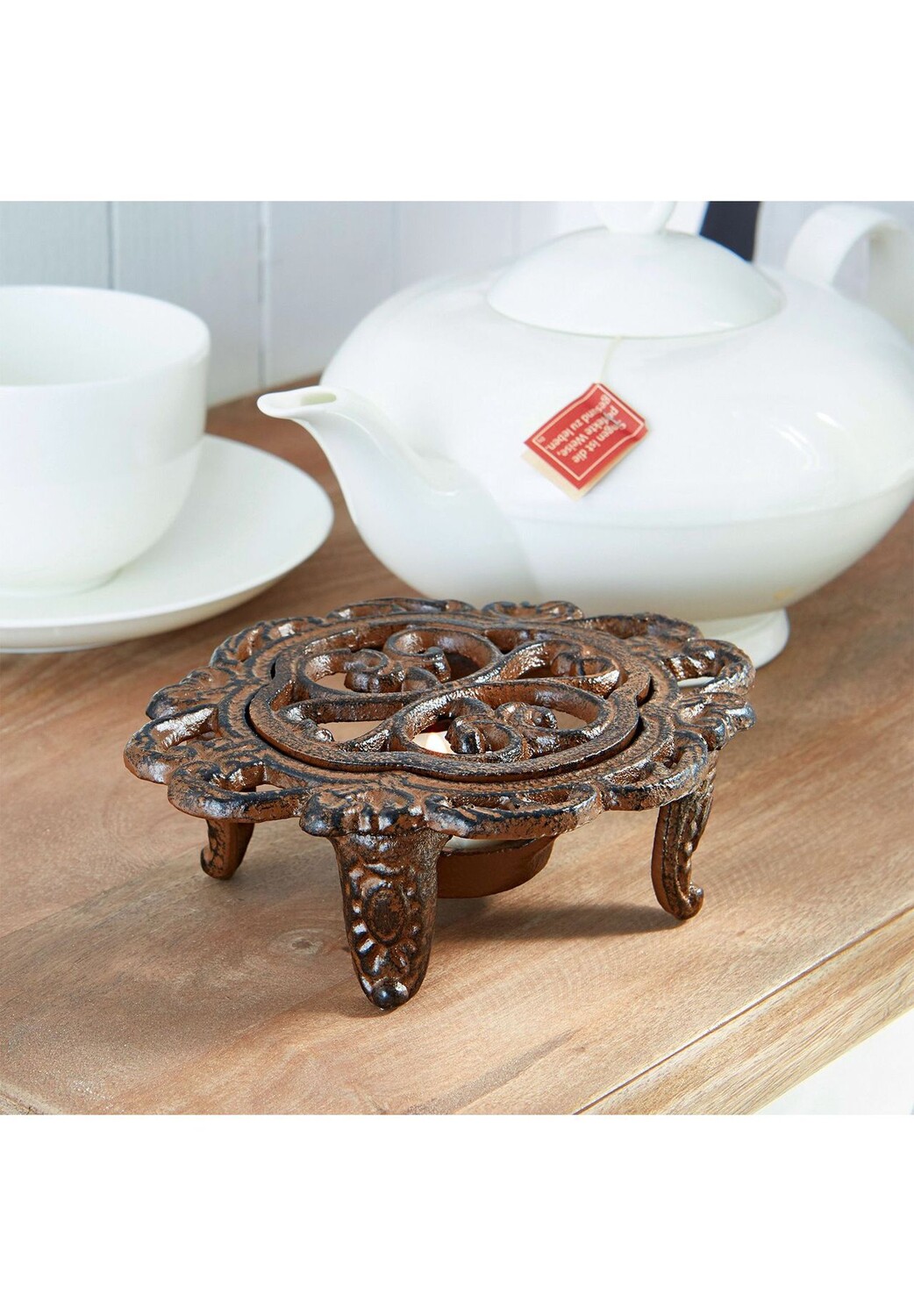 Описание предмета: Романтический, ностальгический оттенок в декоративном исполнении. Отлит цельной деталью из чугуна. С антикварной отделкой и четырьмя футами. Наслаждайтесь чаем с дополнительной дозой стиля. Этот красивый подогреватель сохранит ваш напиток теплым, а также станет очень привлекательным акцентом. Он немного похож на старые добрые времена и также может быть ценной находкой на блошином рынке. Детализированное изделие также является хорошим выбором для чистого декора.