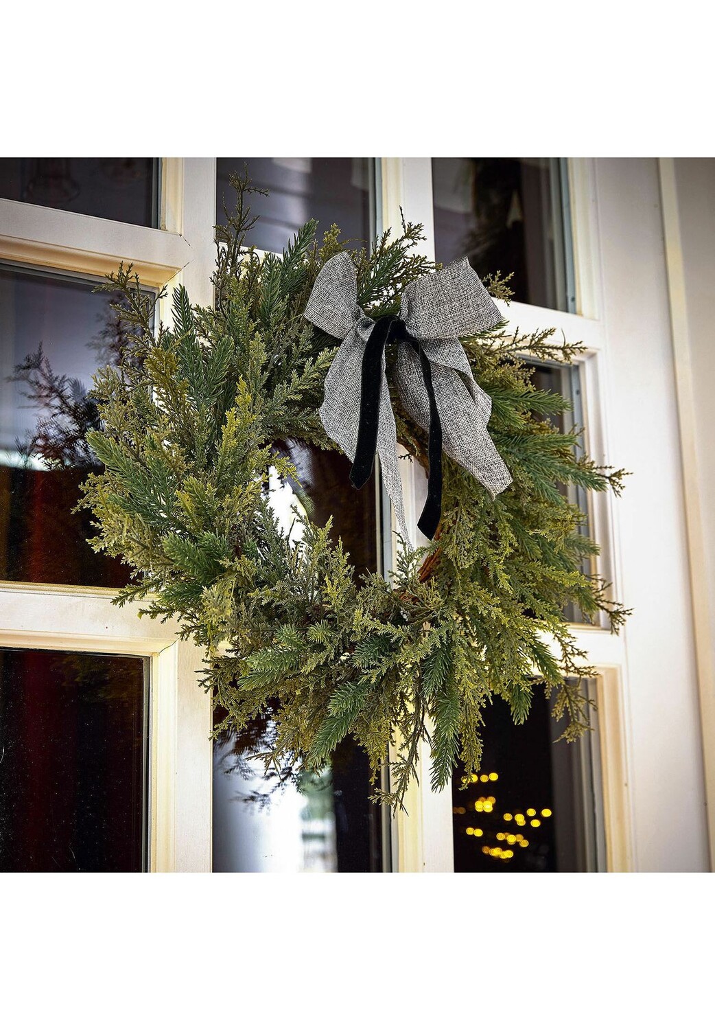 Описание предмета: Естественно красивое сочетание искусственных и настоящих веток. Венок искусно связан из сосновых веток. Зеленые ветки можно легко снять и переставить. Естественный вид этого венка может легко соперничать с красотой собранных вручную сосновых веток. Наконец, для этого украшения были тщательно подготовлены настоящие сосновые ветки, чтобы они не потеряли своей красоты. Преимущество: Венок не требует игл и может использоваться долгие годы. Традиционный и вневременной дизайн подходит для любого сезона. Необычность этого высококачественного аксессуара заключается в том, что вы можете просто снять ветки и прикрепить их к основе венка по своему усмотрению. Ваша фантазия при декорировании не имеет границ.