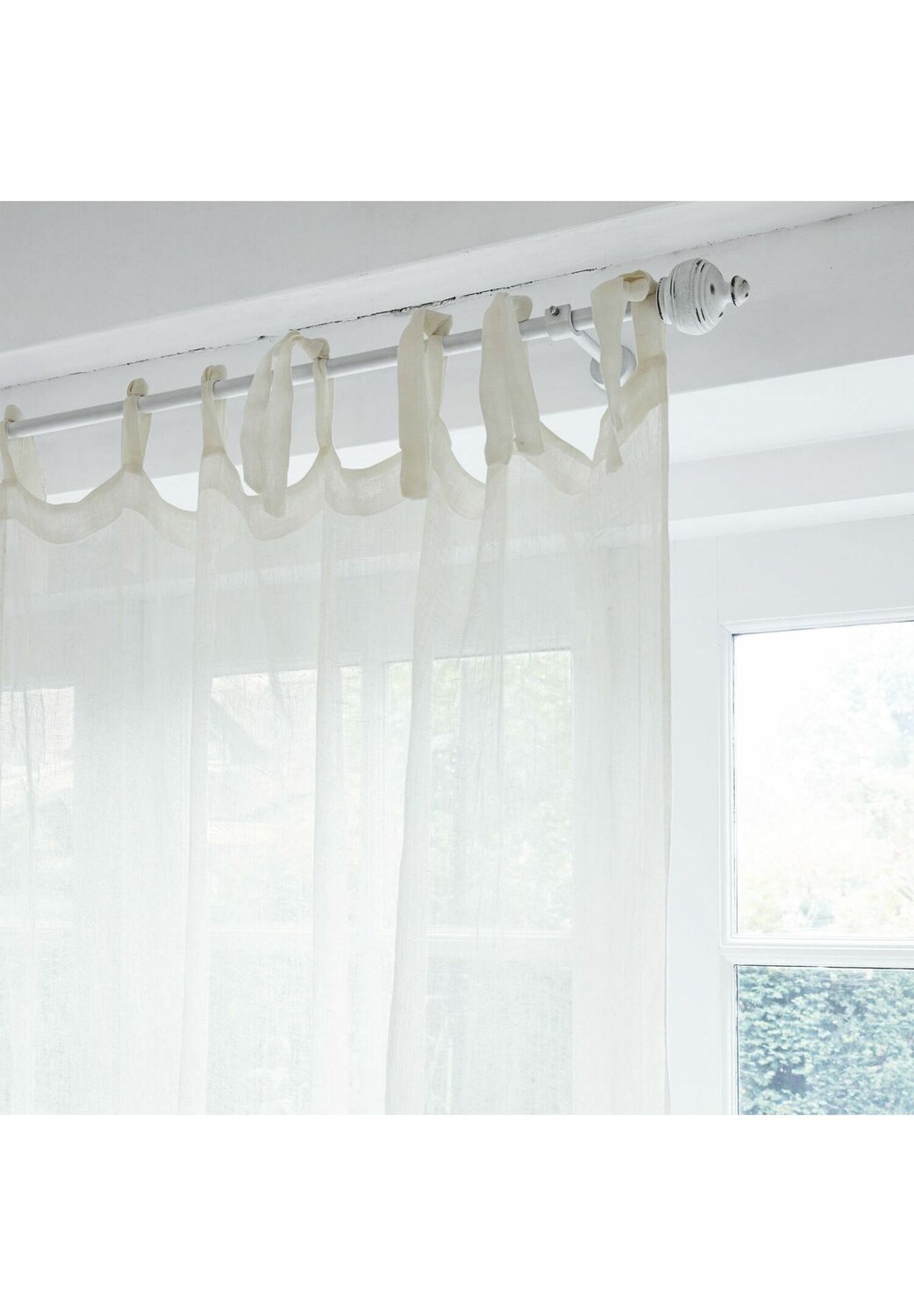 Описание товара: Простая льняная занавеска на завязках. Легко надевать и застегивать благодаря завязкам, встроенным в верхнюю часть ткани. Это придает шторам современный вид и подходит к современному стилю мебели.