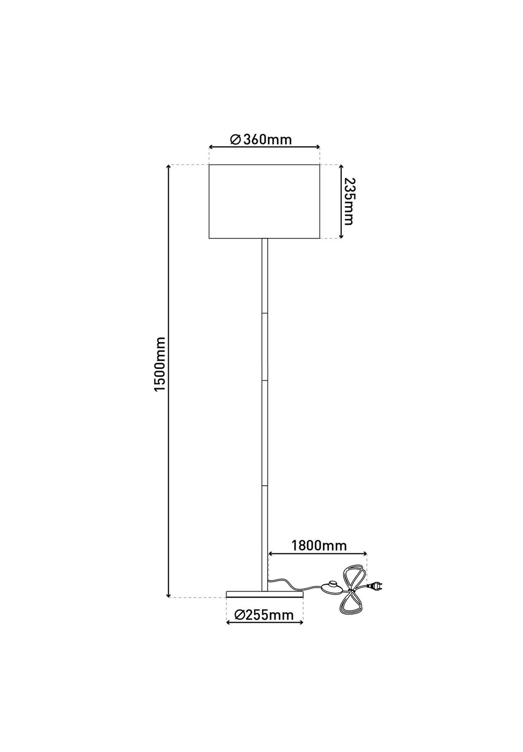 Особенности: Искл. 1x E27 макс. 40 Вт; IP20/СКИИ; 220–240 В~/50 Гц; Д: ок. 36 см/В: прибл. 150см; Материал: металл/текстиль/резиновое дерево; Цвет: черный/натуральный; Дополнительные характеристики: Тень: D: ок. 36 см/В: прибл. 23,5 см; Стопа: D: прибл. 25,5 см/В: прибл. 126 см; Линия подачи: ок. 180 см/черный; Вкл. Прессостат