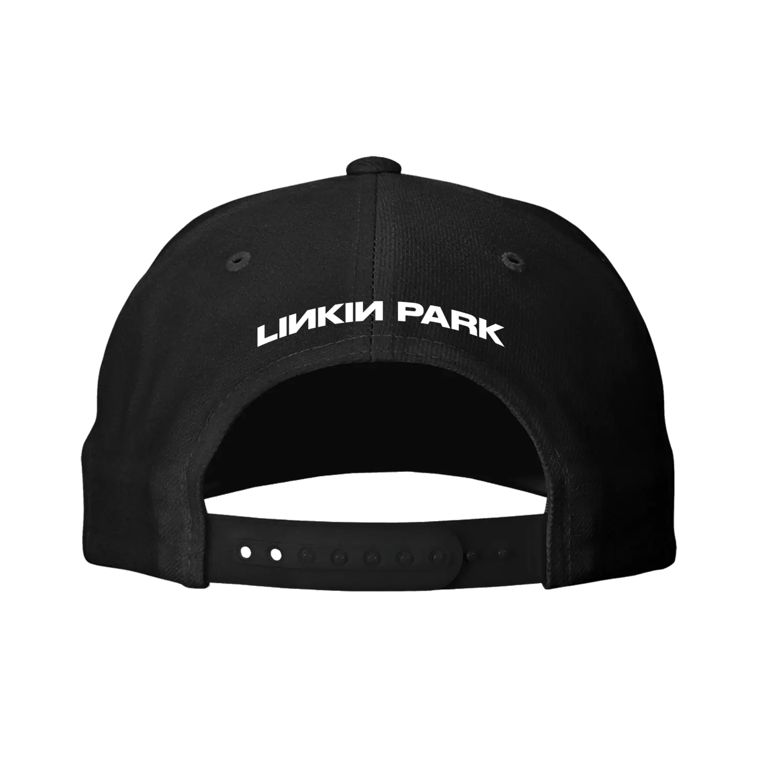Черная шапка с защелкой и вышивкой «RNMTN» спереди и «Linkin park» сзади.