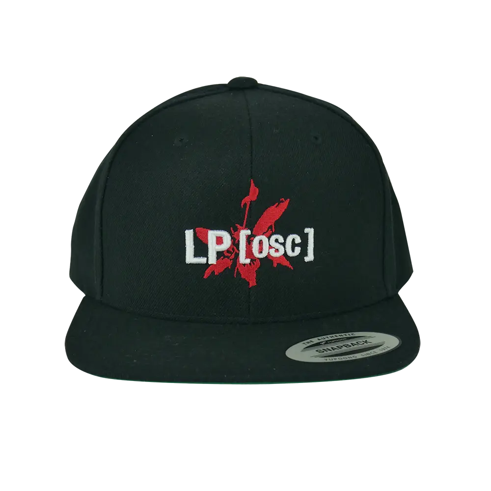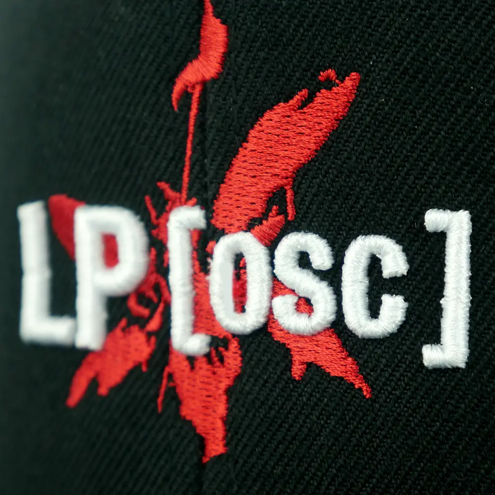 Черная кепка с двухслойной вышивкой спереди: «LP [OSC]» - 3D-вышивка поверх плоской вышивки уличного солдата.