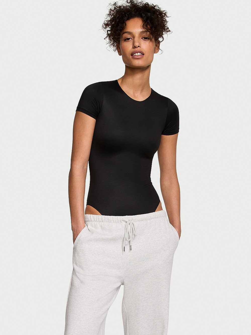 Эта минималистичная модель с короткими рукавами и круглым вырезом в сочетании с любимыми брюками выглядит как гладкая, приталенная футболка. Наша новая, мягкая для ребенка ткань обеспечивает удобную, гладкую поддержку без стеснения.
