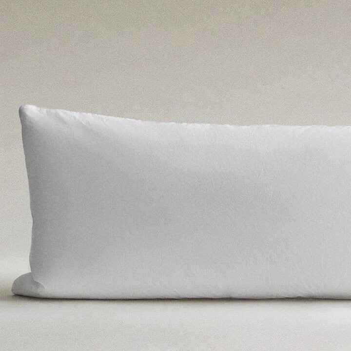 Удлиненная перьевая/пуховая подушка. Изготовлена из 90% перьев и 10% пуха. Средне-низкая жесткость, идеально подходит для людей, которые спят лицом вниз, чтобы снять напряжение в плечах и руках.