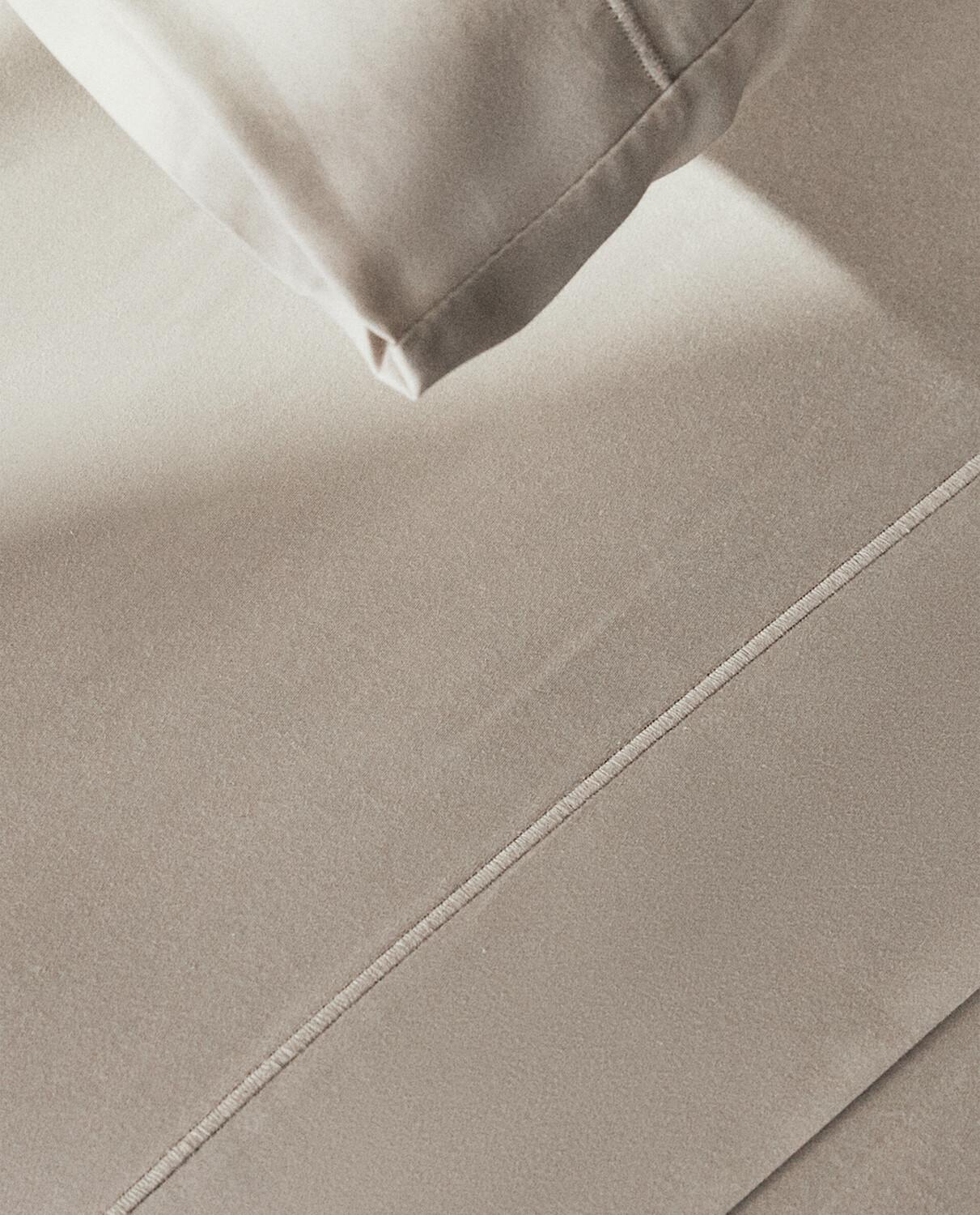 Простая плоская простыня из сатина плотностью 300 нитей с отделкой.