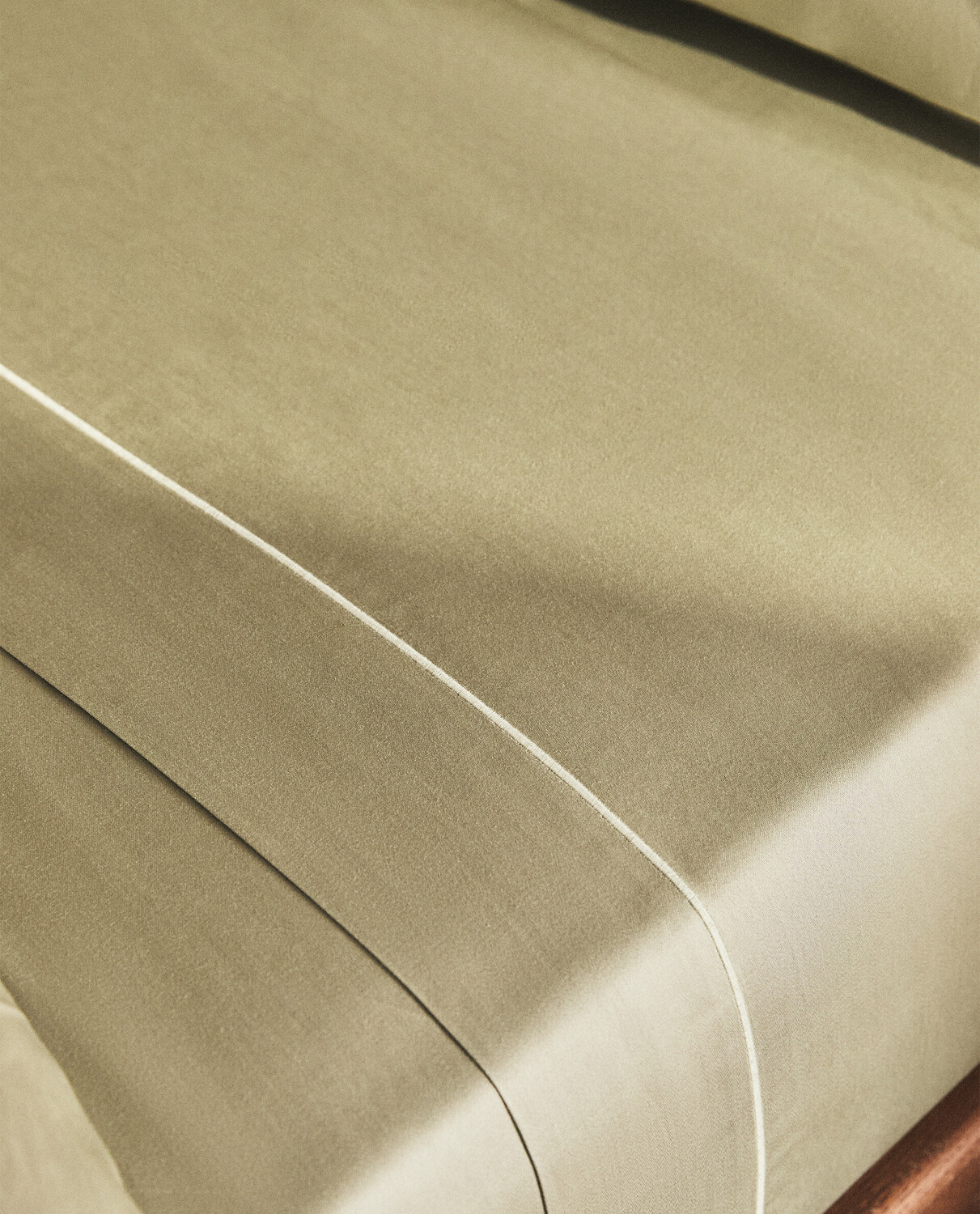 Простая плоская простыня из сатина плотностью 300 нитей с отделкой.